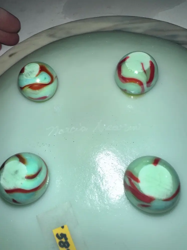 This beautiful is a must-have for any collector of Art Glass. The piece features a stunning design by Marcia Newren and is in perfect shape for its age. The is made of glass and has intricate details that make it a true work of art. Its vintage charm and unique theme make it a great addition to any home decor. It has no cracks or any kind of signs of broken glass and measuring 11” tall 11” wide