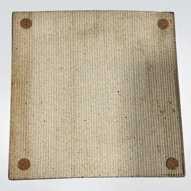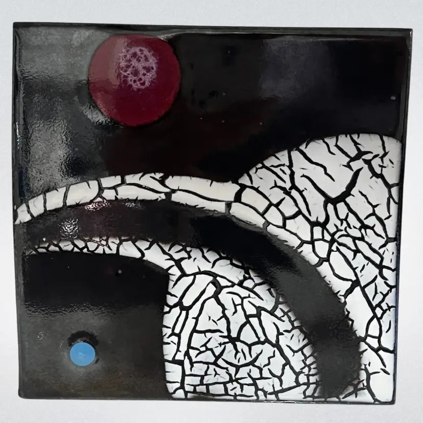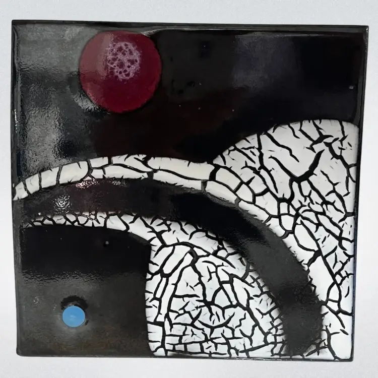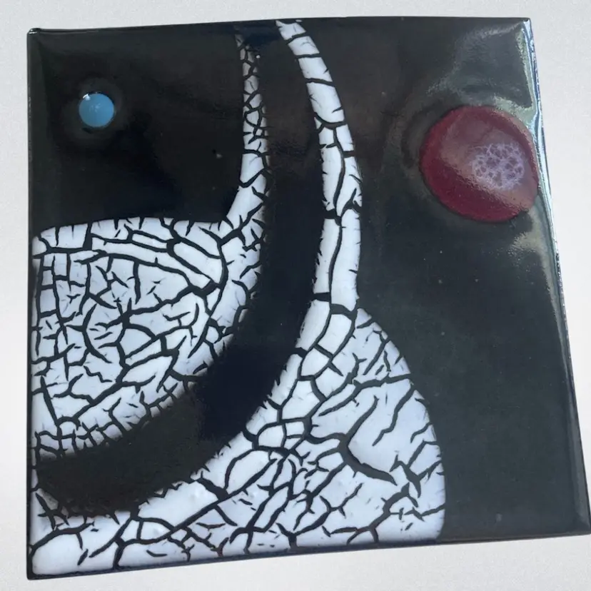 #01 Mid-Century Modern Abstract Art Tile – Crackle Glaze & Glossy Accents- 8.75” x 8” - Cork Feet- Trivet, Wall Art