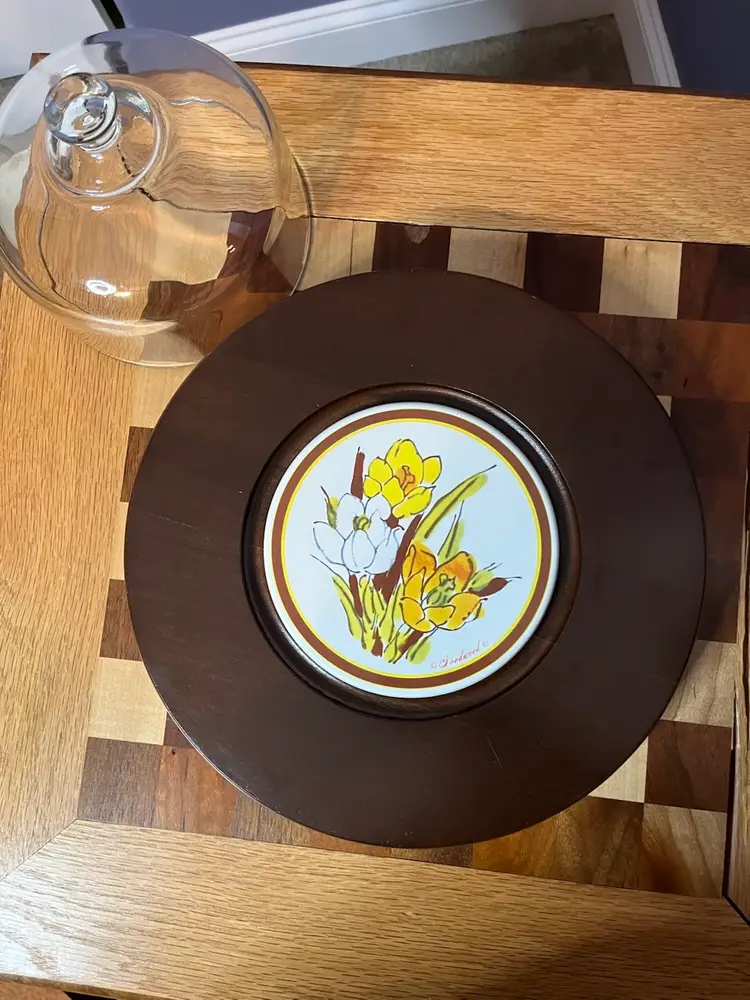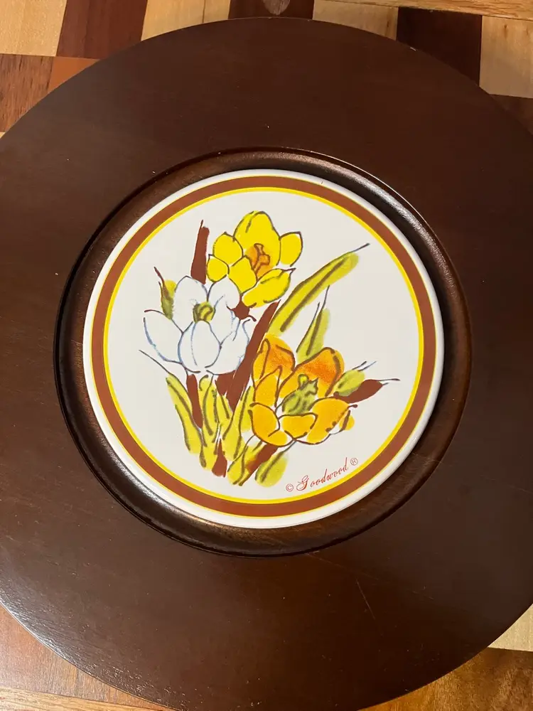 Goodwood was a brand known for producing decorative housewares, including cheese boards and serving accessories, often featuring floral or nature-inspired designs. These items were popular in the mid to late 20th century for their aesthetic appeal and practical use in entertaining.