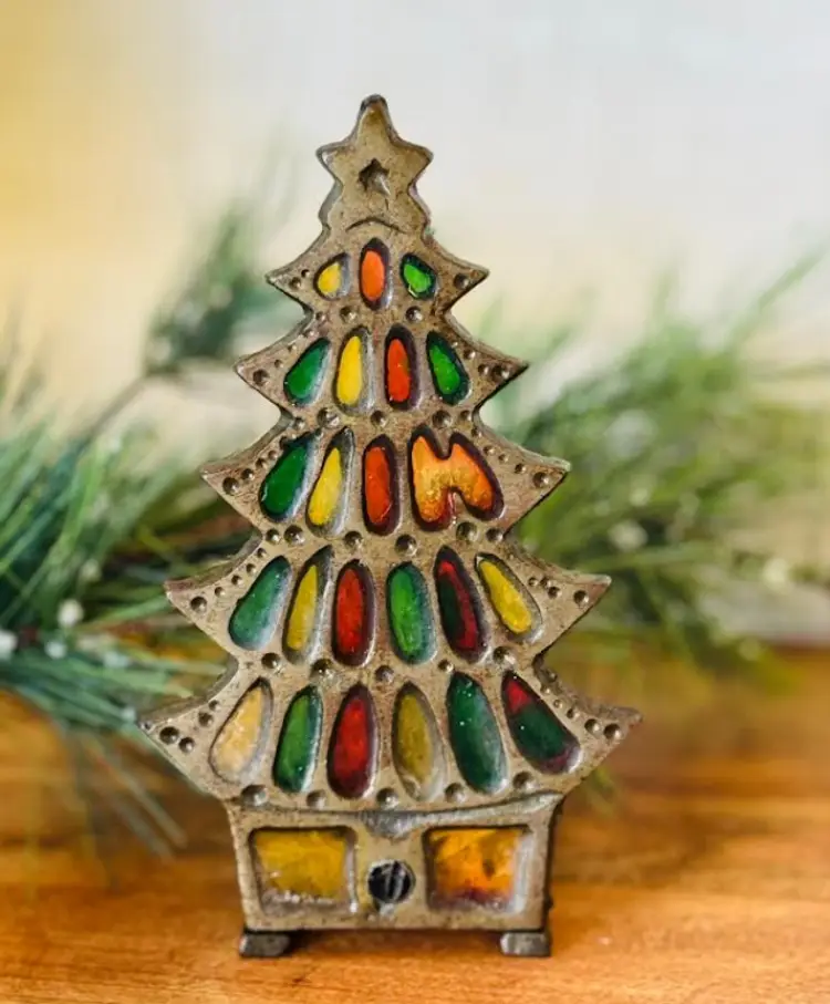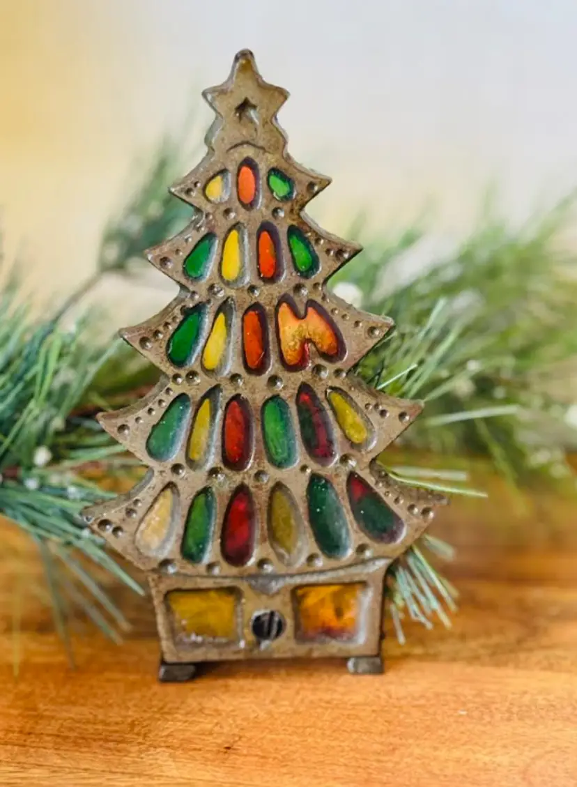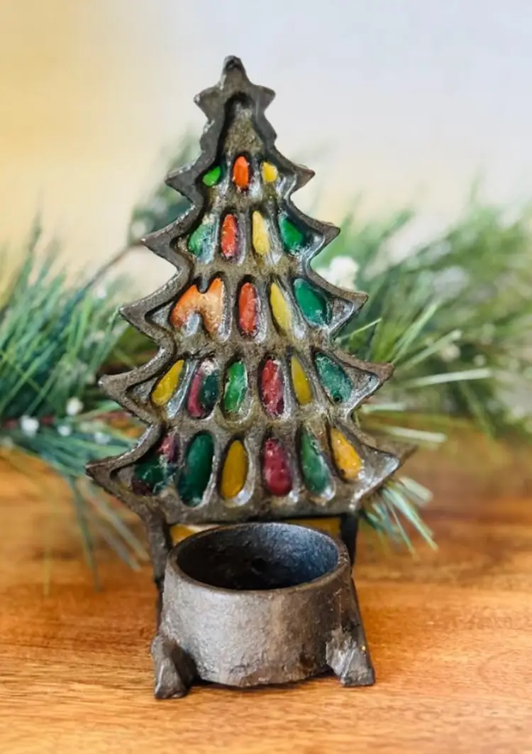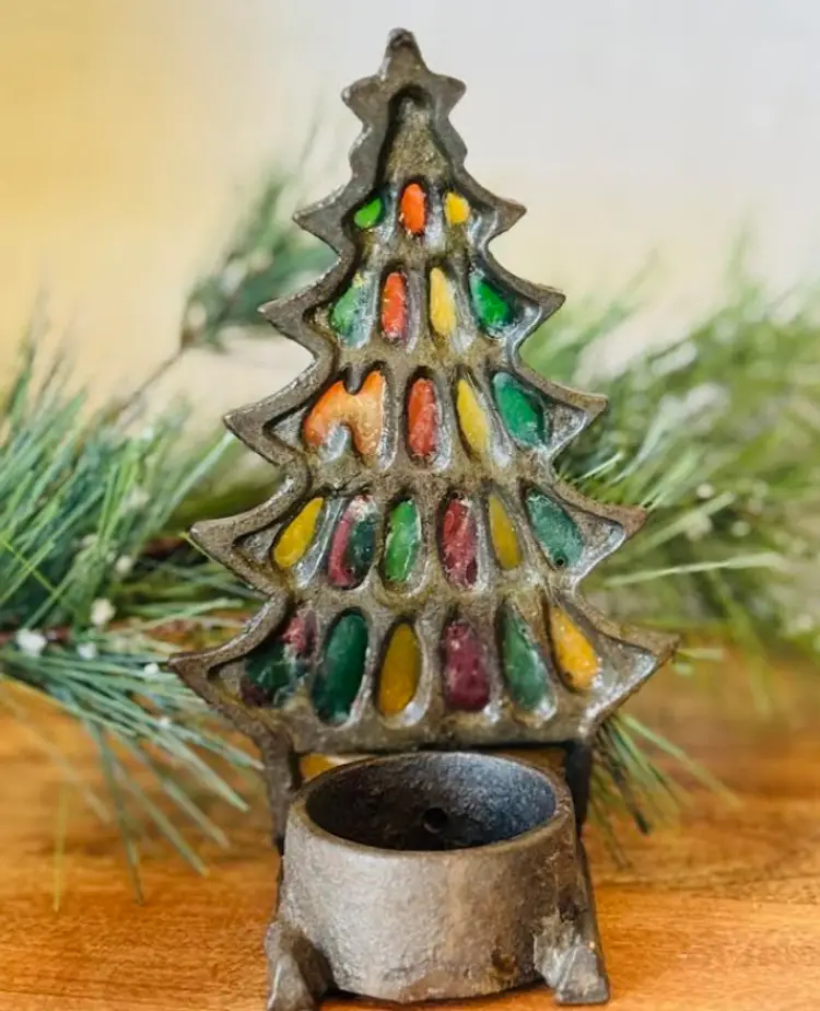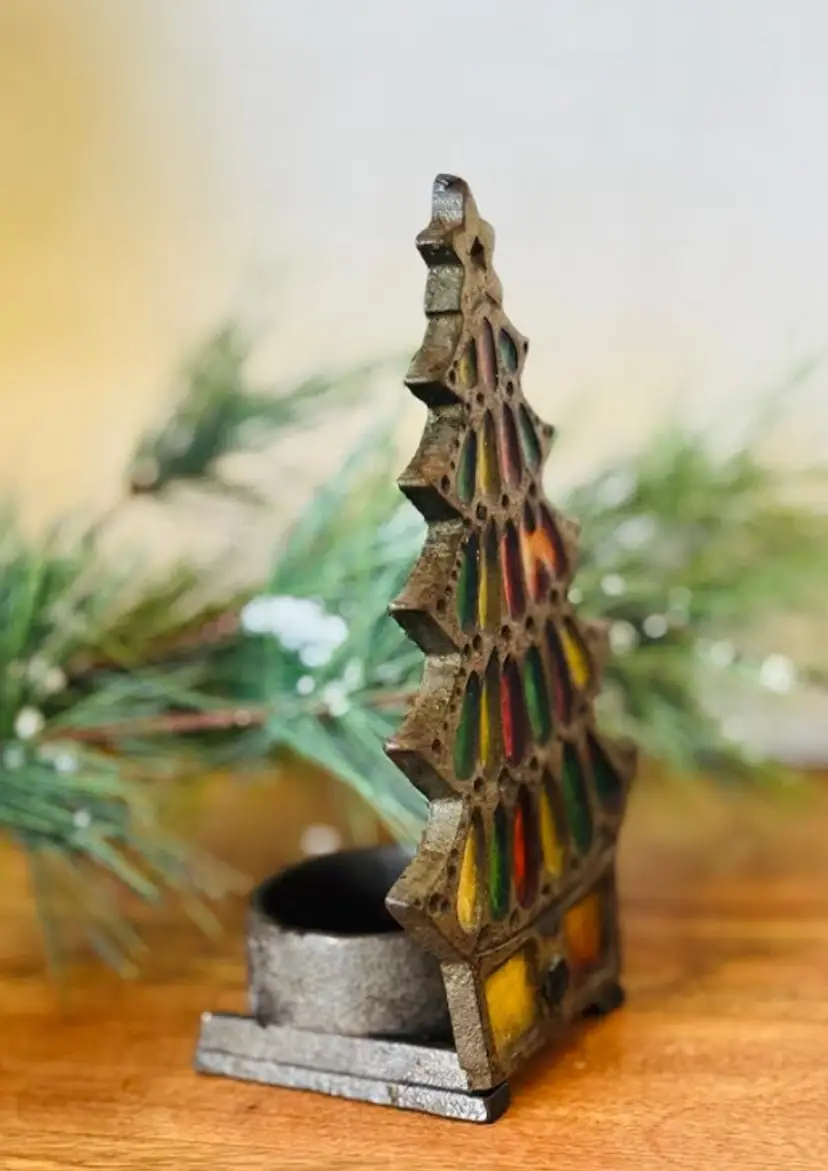 Crafted with a timeless aesthetic, this vintage stained glass and metal tea light holder is a charming addition to any Christmas decor collection. The intricate metallic finish complements the delicate tree subject, creating an elegant piece that captures the holiday spirit. At 5.5 inches tall, it's the perfect size to adorn a mantel, shelf, or table, bringing a warm and festive glow to your space.Originating from Taiwan, this tea light holder is designed to celebrate the occasion of Christmas, adding both function and flair to your holiday gatherings. The unbranded nature of this piece ensures its uniqueness and makes it a wonderful gift or a special treat for yourself. With its durable metal construction and classic design, it's sure to become a treasured part of your festive traditions.