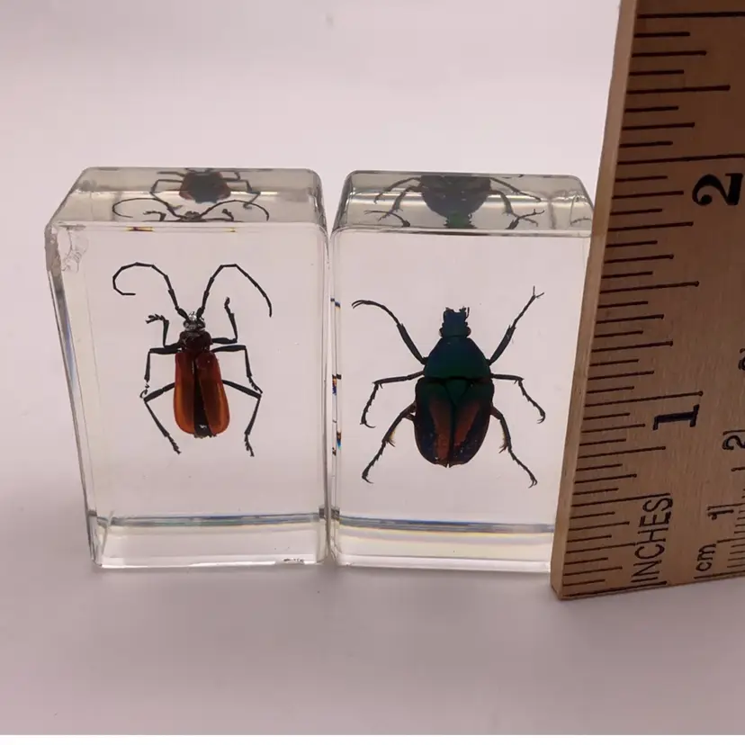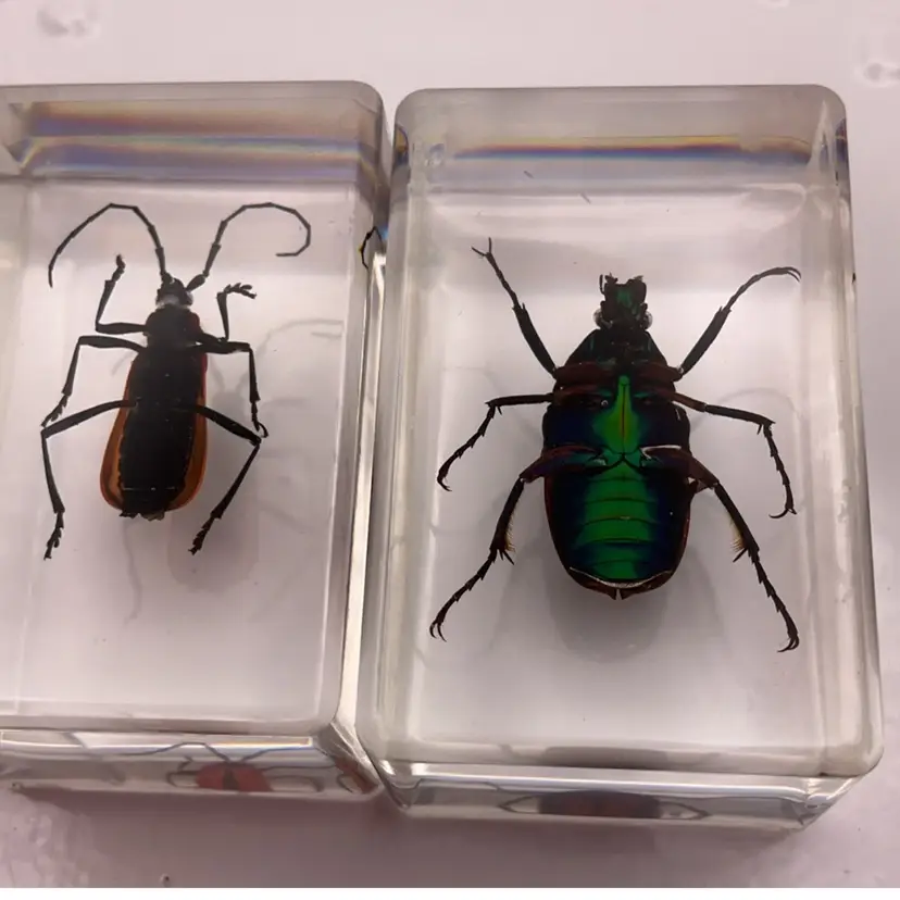 #02 LBB Two Iridescent Beetles Bugs in Lucite 1.75” x 1”