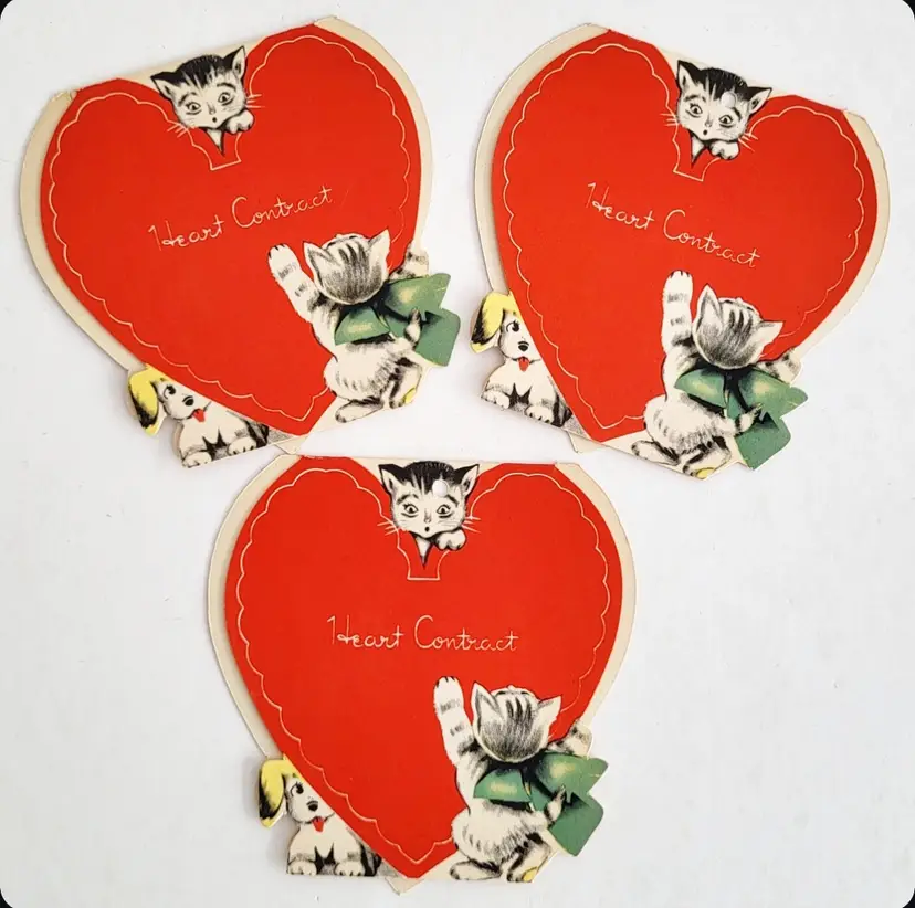 05 Vintage Valentine Cat Dog Heart Tally Cards