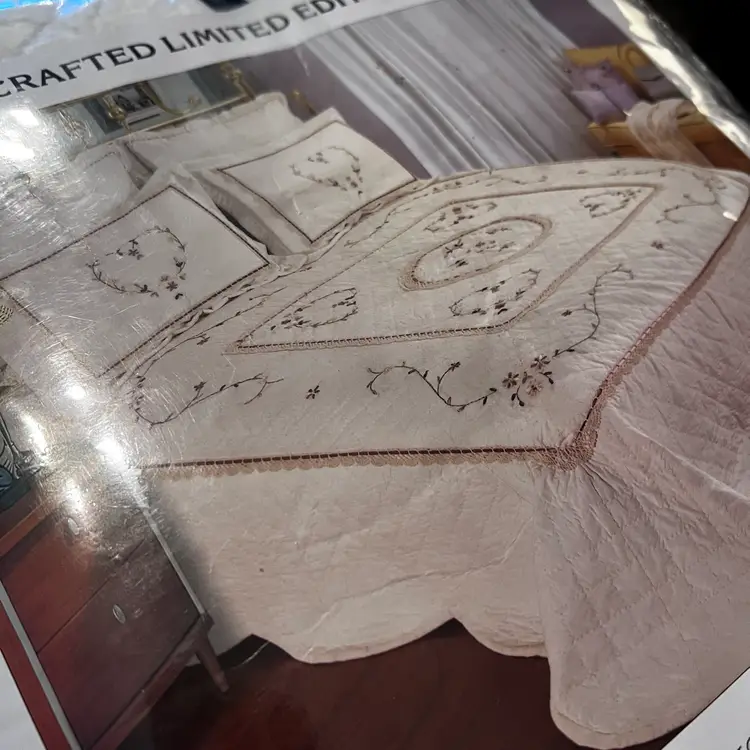 This is just beautiful. This is a full/queen. It has four total shams plus the quilt They sell for a lot more than this online. I did look them up.