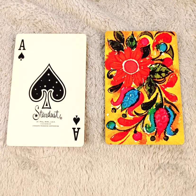 1 Single Swap Card - Playing Card. Retro flowers. Mod design. 1960's-1970's. Ace of Spades. Made by Stardust in MN. Dimension 2.5 x 3.5. Read description.