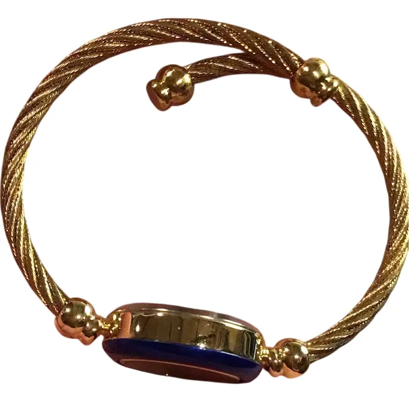 Signed. Pierre Nicol Fashion Watch and this specific style is part of their popular vintage watch sets that feature interchangeable bezels (the rings around the watch face). It’s a women's bangle watch with a black dial and a blue bezel currently installed, plus four other colorful rings. The cuff is a spreading bangle easy to size.