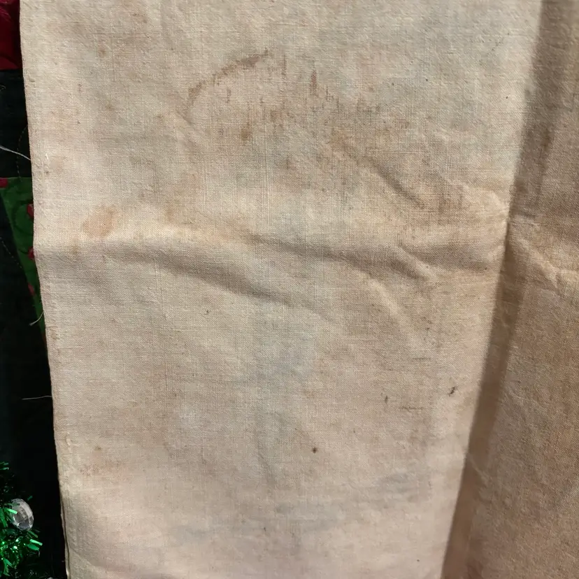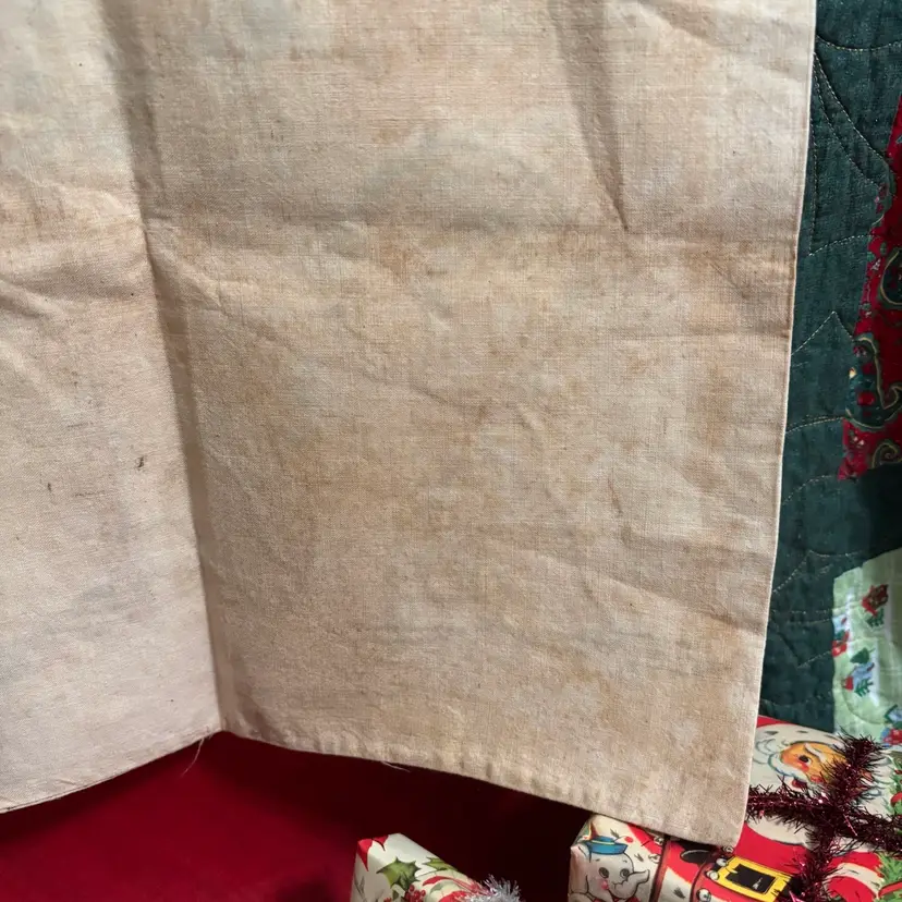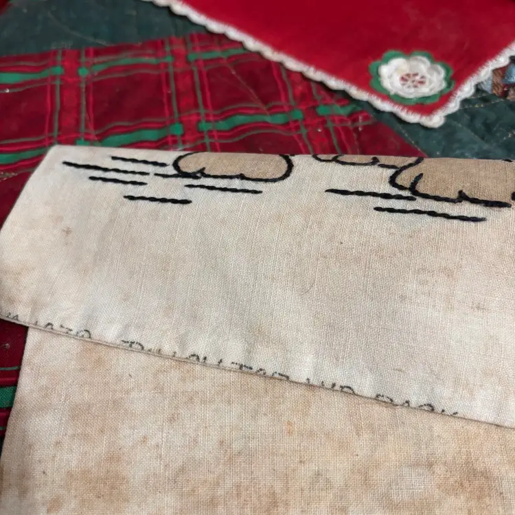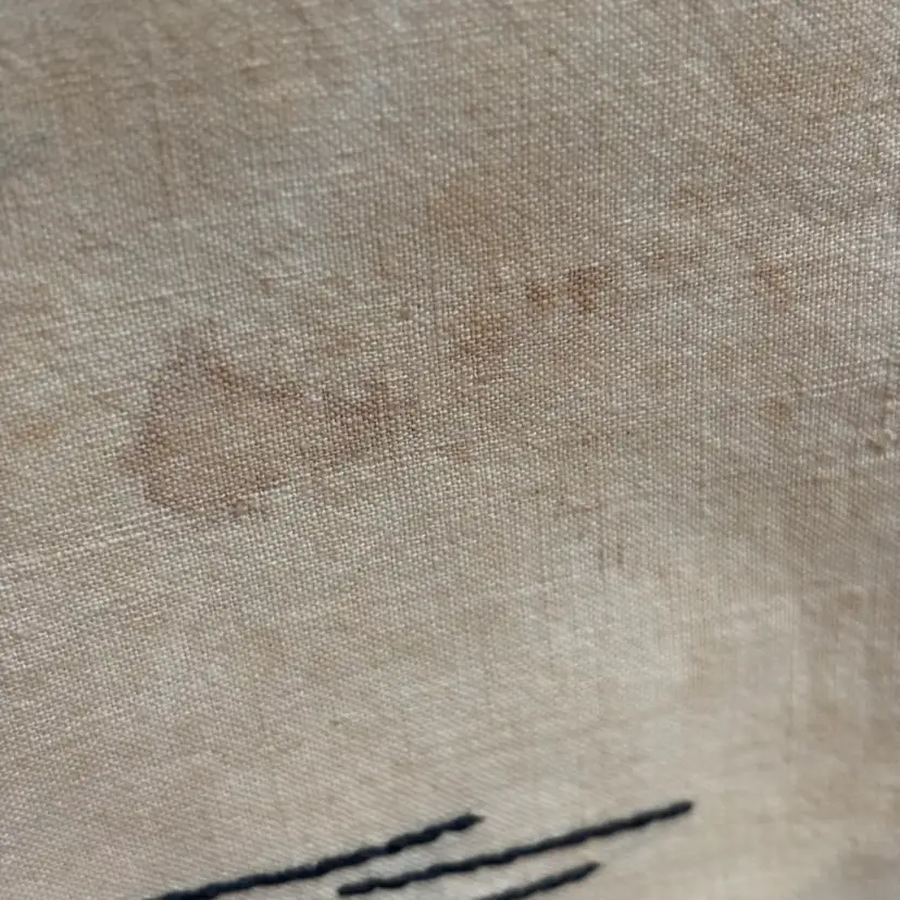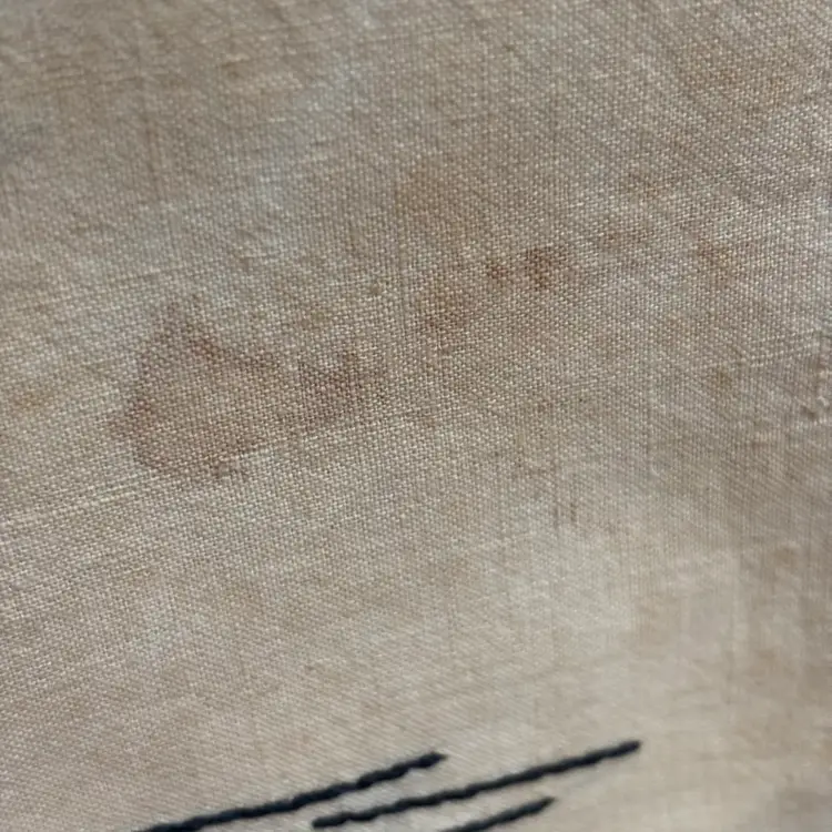 Vintage pillow cover with appliqué and embroidery. Doodle dog and parrot. Exquisitely done. As you can see the fabric discolored and stained due to age. Adds to the aesthetics. I did not wash it due to fear of embroidery thread bleeding. The fabric is still in great shape, no rips, tears. 109% cotton. Measures14”x14”. Cans be used for pillow cover or framed.