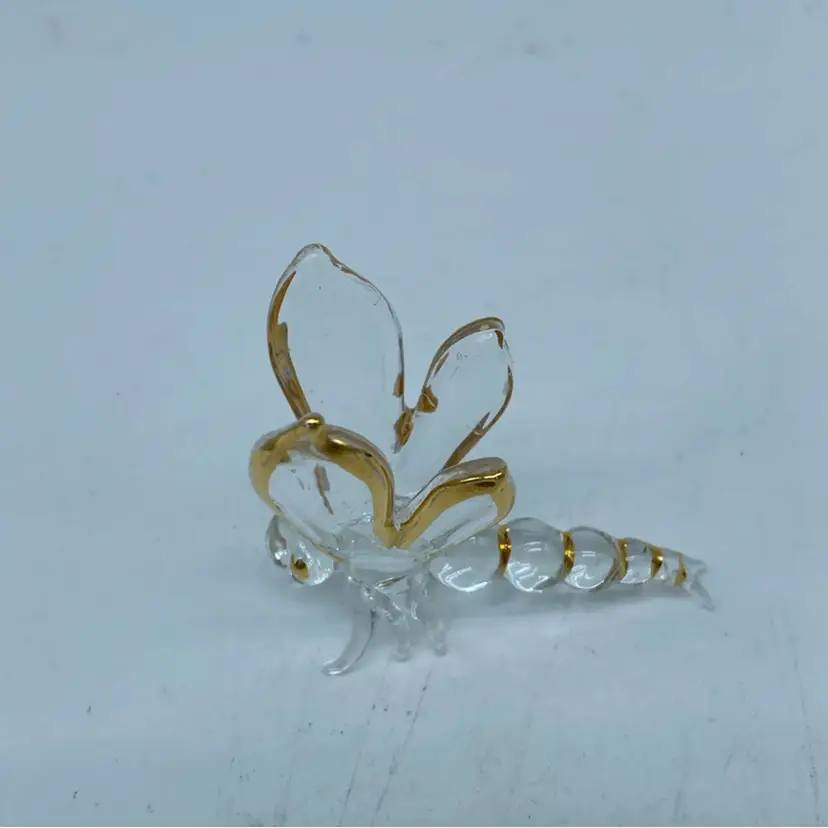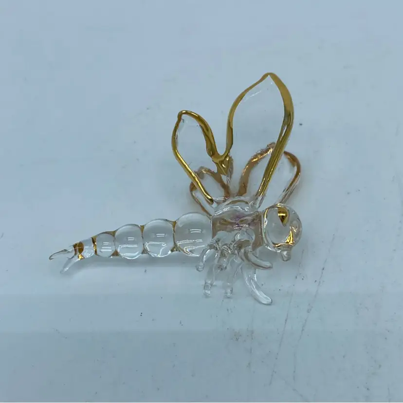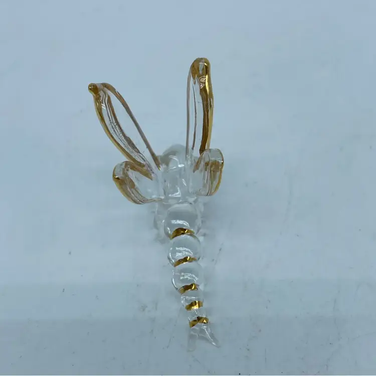 Dragonflies have long been symbols of change, adaptability, and self-realization across various cultures. Their depiction in decorative arts, such as this glass and wire piece, often aims to capture their ephemeral beauty and symbolic meaning, making them sought-after items for collectors.