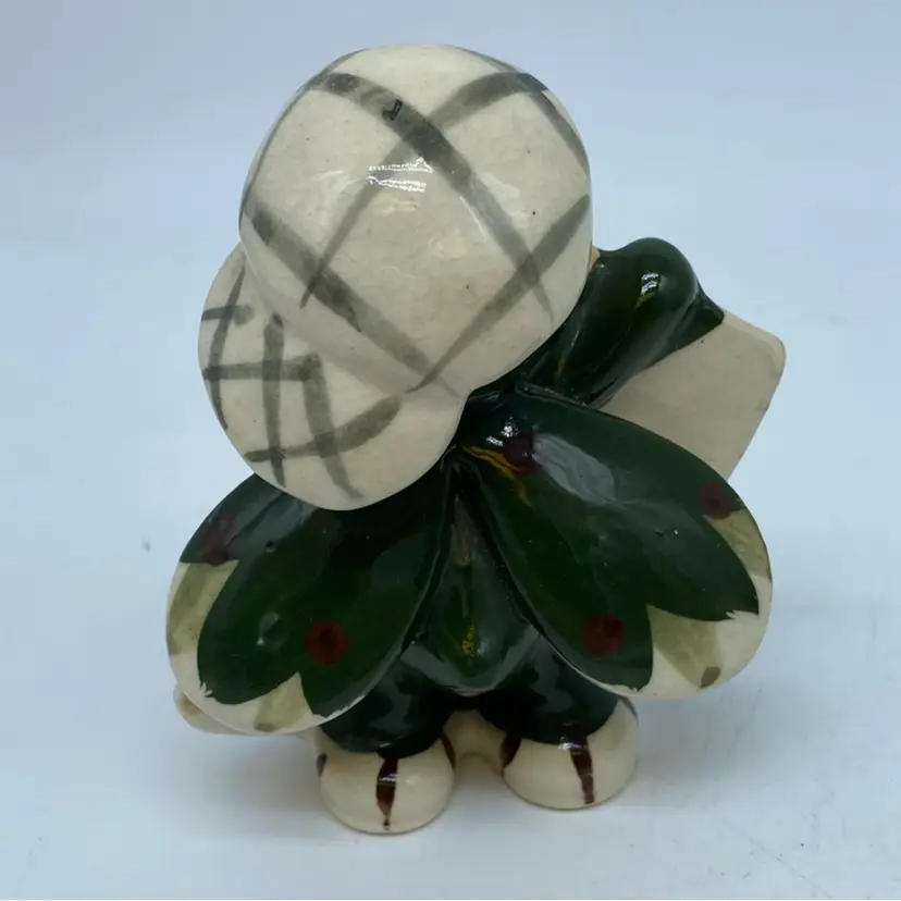 Ceramic figurines depicting anthropomorphic animals and insects became popular collectibles in the mid-20th century, particularly those produced in Japan for export. These items often featured whimsical designs and bright colors, appealing to a wide audience looking for decorative and charming pieces. Many were mass-produced, but certain designs or makers gained a following among collectors.