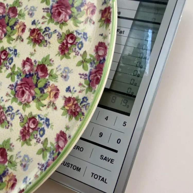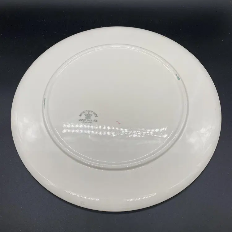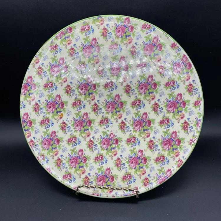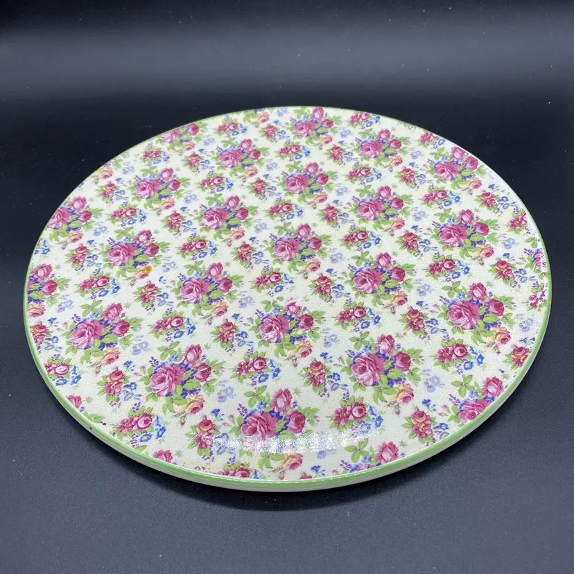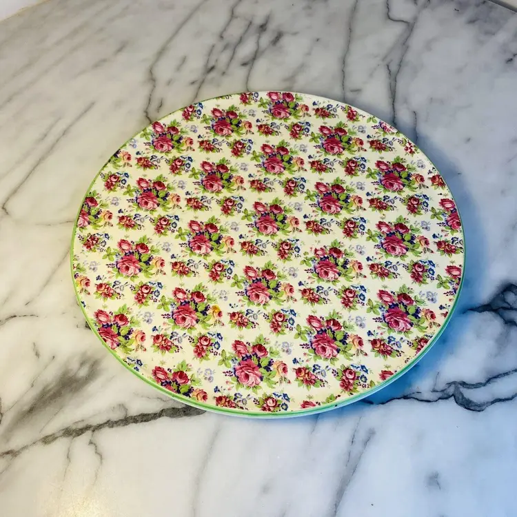 This is a Royal Tudor Ware Chintz Cake Plate made by Barker Brothers in England. This cake plate features pretty pink roses and green foliage.