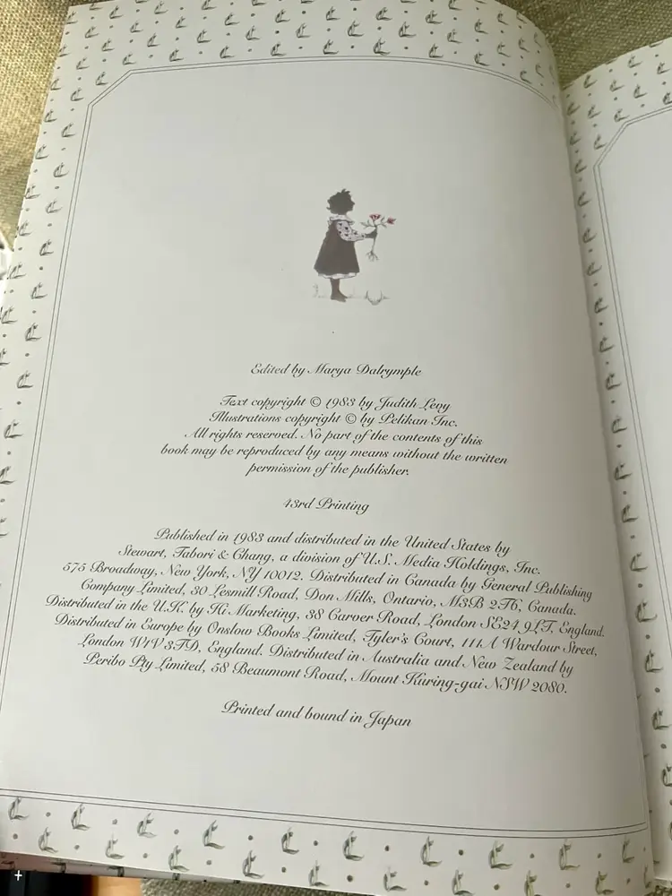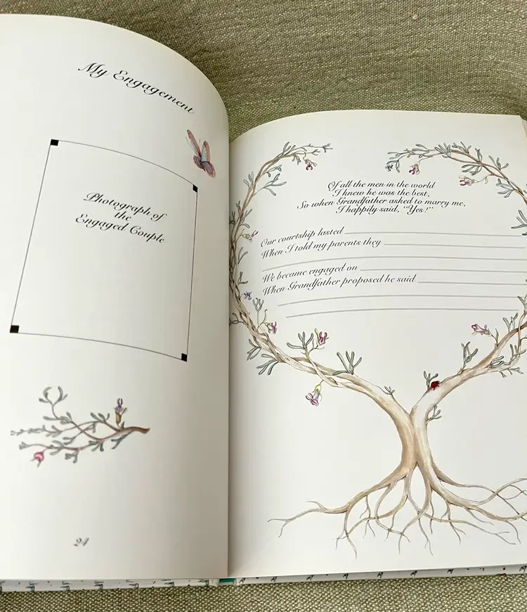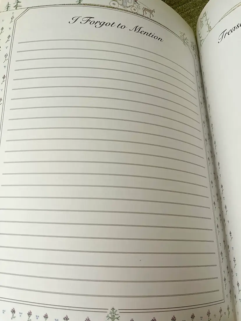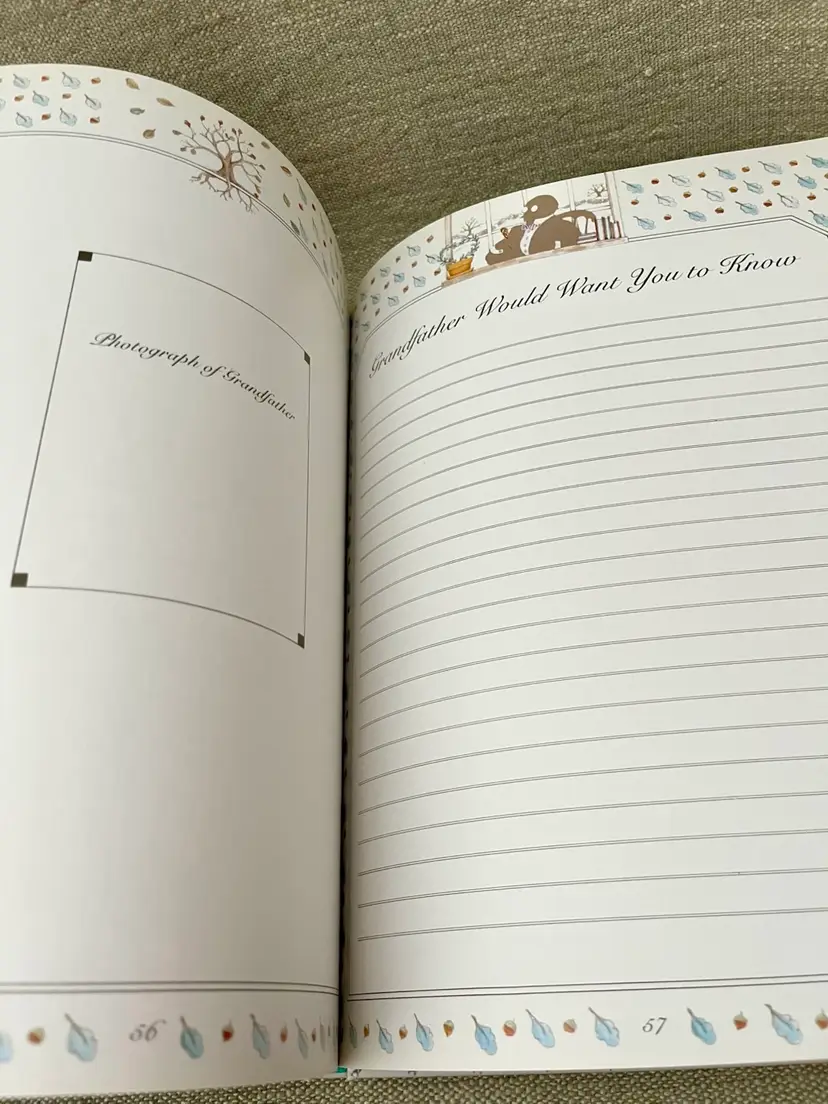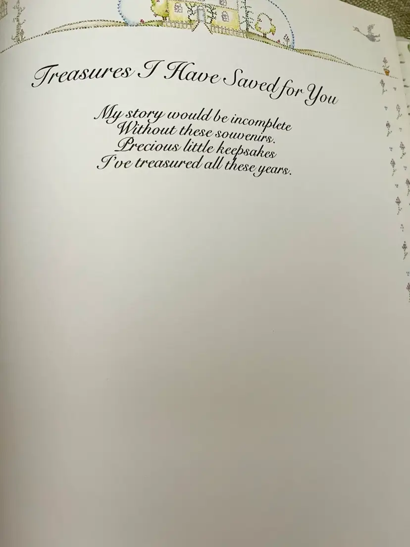 This is a 1983 Grandmother Remembers written heirloom for a grandchild, featuring a white and multi-color accent design. Here is an opportunity to capture the history and family genealogy of the grandchild's lineage, focused on preserving memories and storytelling. Originating from Japan, this unique keepsake is suitable for both baby boys and girls, making it a special and meaningful gift for any child.