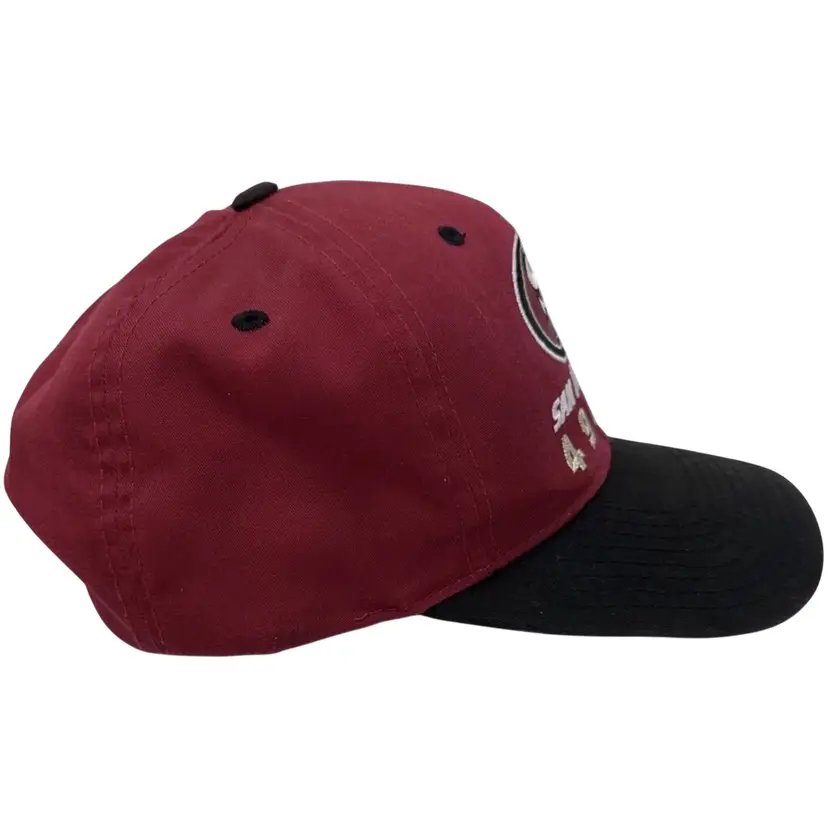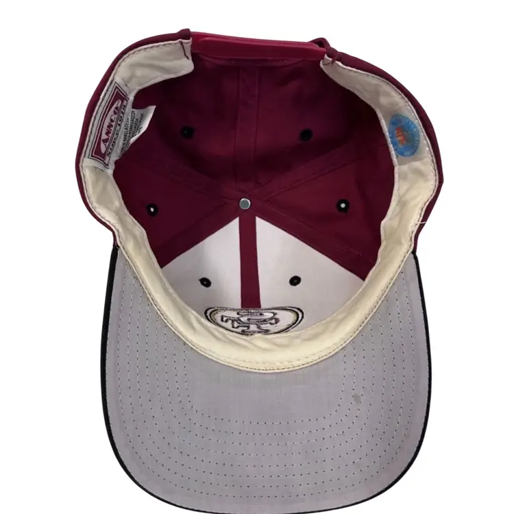 Hat is pre-owned, please review all pictures for any signs of wear and tear due to the age of the hat. The Vintage 1990’s San Francisco 49ers NFL Snapback by Annco is a classic cap featuring the iconic team logo and colors of the San Francisco 49ers. This officially licensed product pays homage to the National Football League and is a must-have for any fan of the team, with a nod to legendary player Joe Montana. With its timeless design and one-size-fits-all style, this snapback is perfect for any football enthusiast looking to add a touch of nostalgia to their collection.
