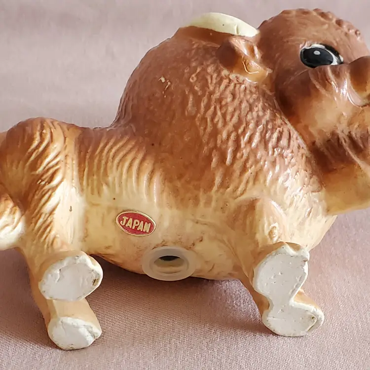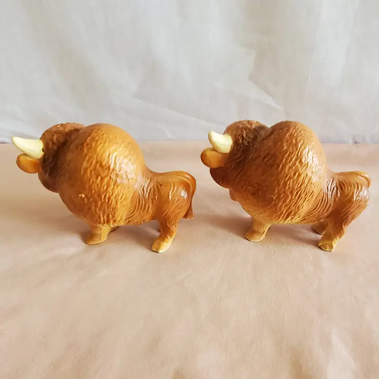Anthromorphic Buffalo Bison Salt & Pepper Shakers Kitschy Two anthromorphic buffalo or bison salt & pepper shakers. Made in Japan. In good vintage condition no cracks or chips and has original stoppers. See pictures for details. Approximately 3.5 inches tall by 4.5 length.