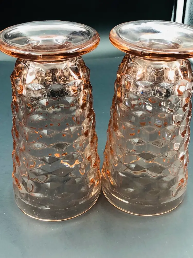 2 Vintage American Whitehall Pink Cubist Colony Colonial Iced Tea