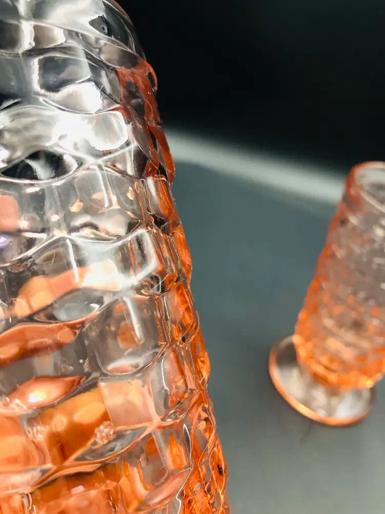 Two cubist pink tumblers, one of which has a tiny nick. Please look at the pictures.