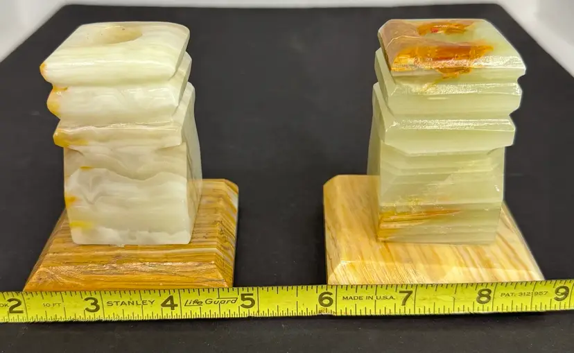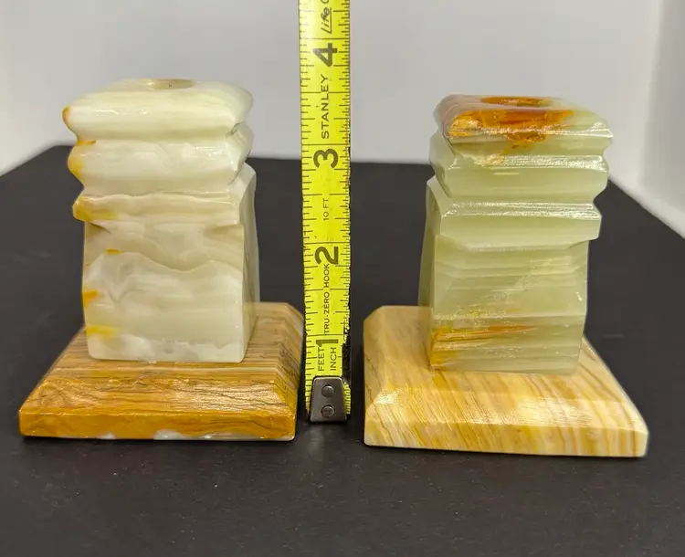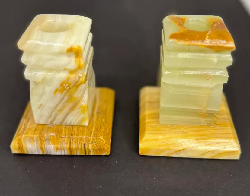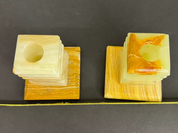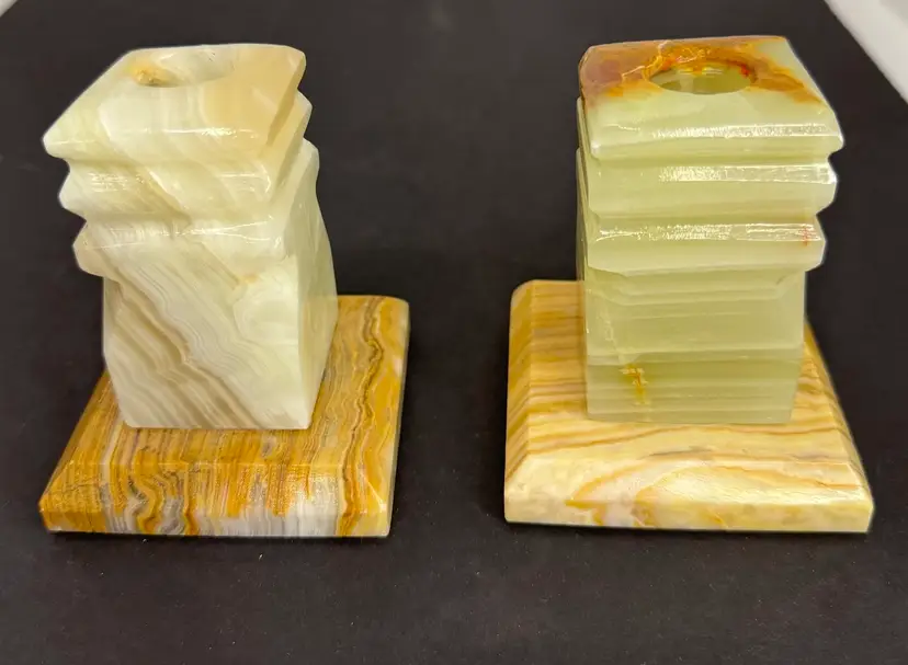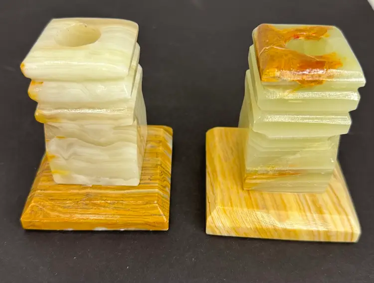 Set Of Two Alabaster Candle Stick Holders 2-1/2” Wide X 3 1/2” Tall