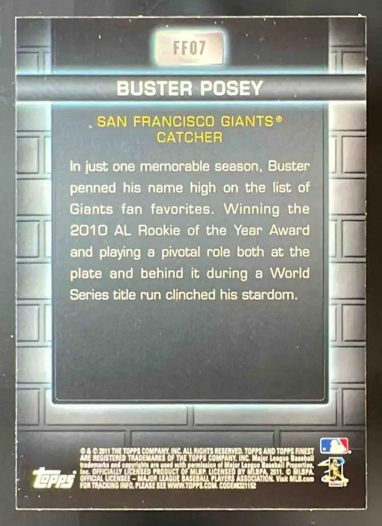 2011 Topps Finest Buster Posey Foundations Orange Refractor #FF07 Giants