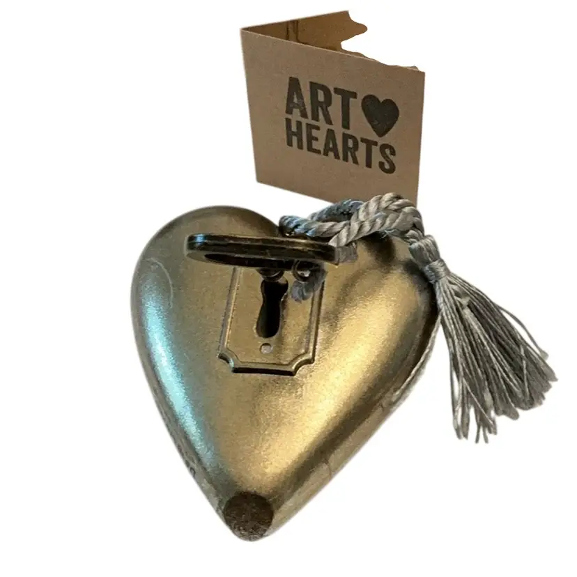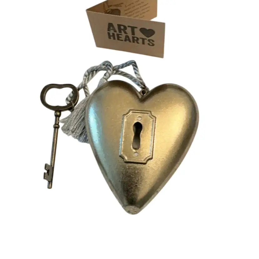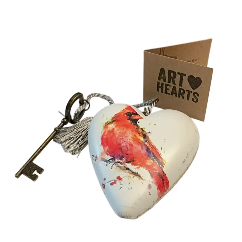 Heart shaped keepsake that can hang as an ornament or insert key into the back for it to stand.