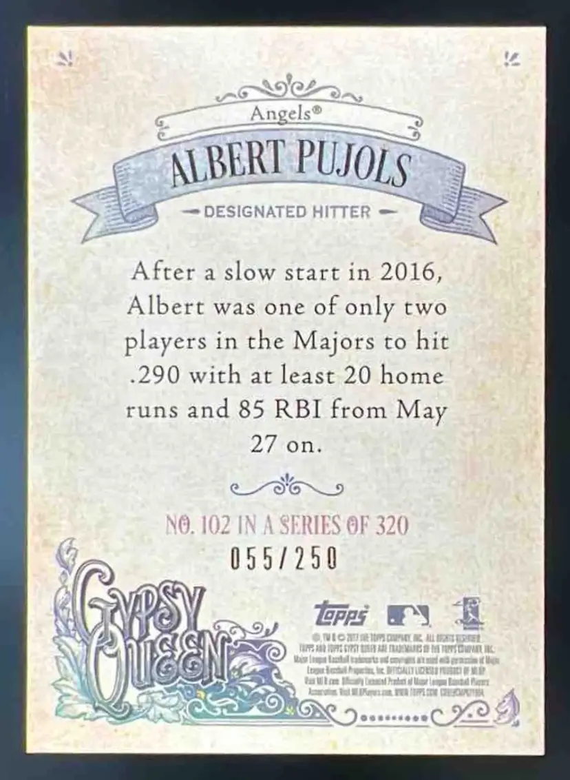 2017 Topps Gypsy Queen Albert Pujols Purple /250 #102 Angels