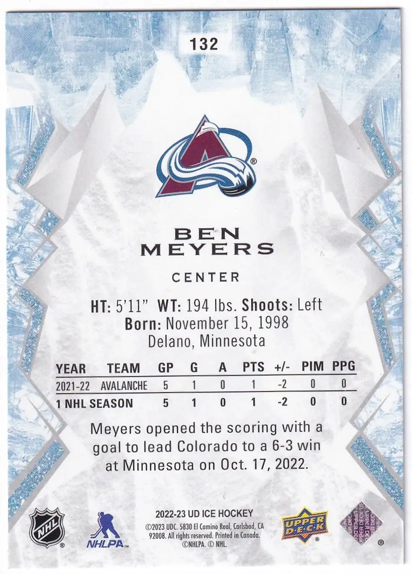 2022-23 Upper Deck Ice Green #132 Ben Meyers Colorado Avalanche