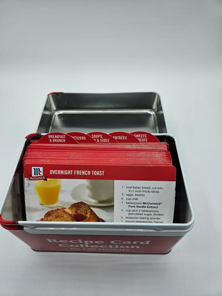 2022 McCormick RECIPE CARD BOX Metal with Recipe Cards, 6.5" X 5"