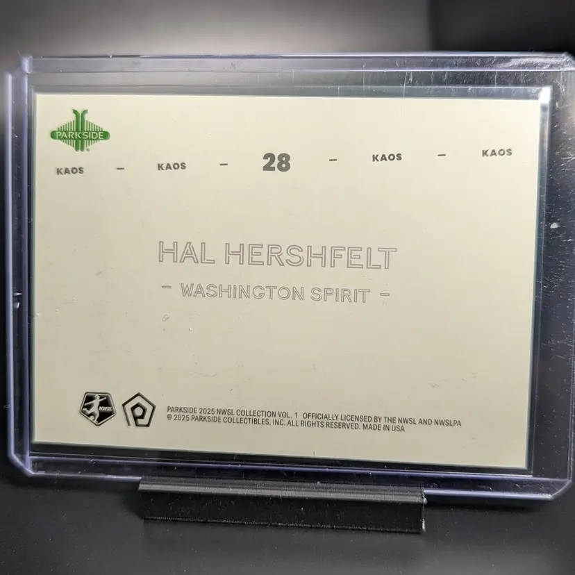 2025 Parkside NWSL Vol 1 Kaos #28 Hal Hershfelt Washington Spirit