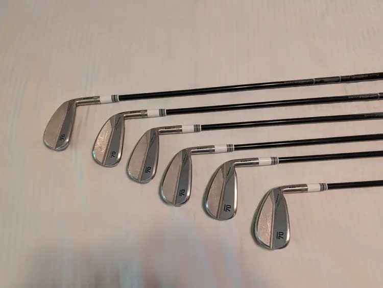 Comes with the upgraded MMT 80g Regular Flex Shafts and custom ferrels. Lie is 2 degrees upright from standard. Standard length. Right handed with new midsize White Star Grips.