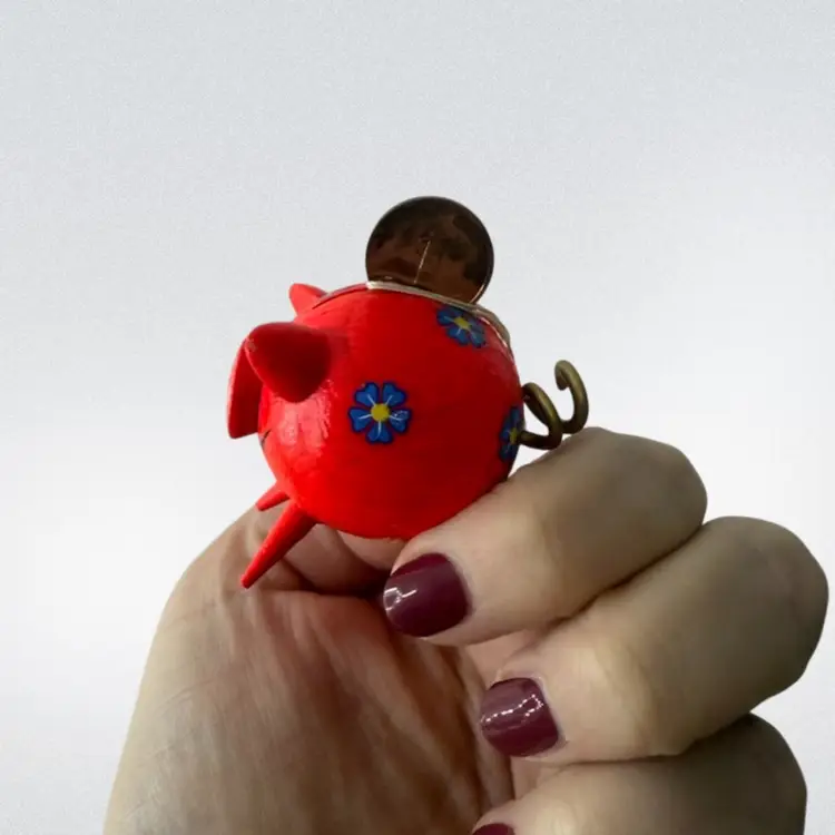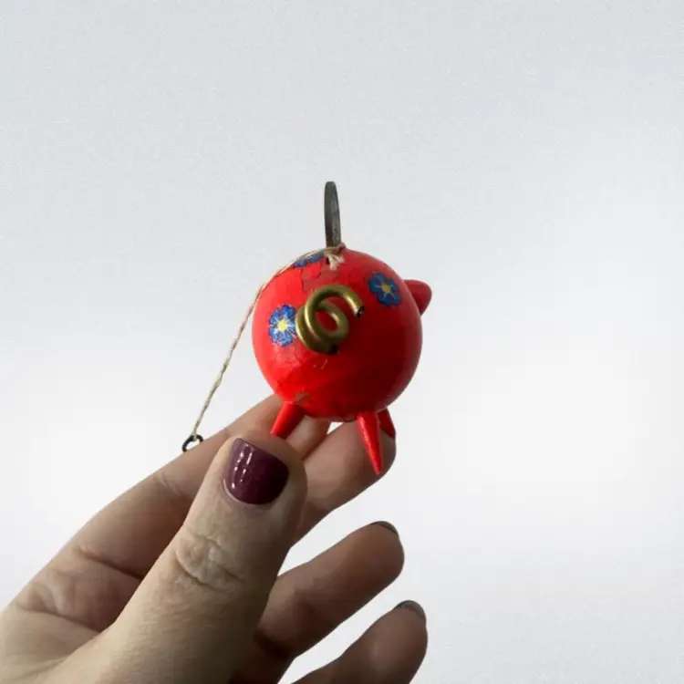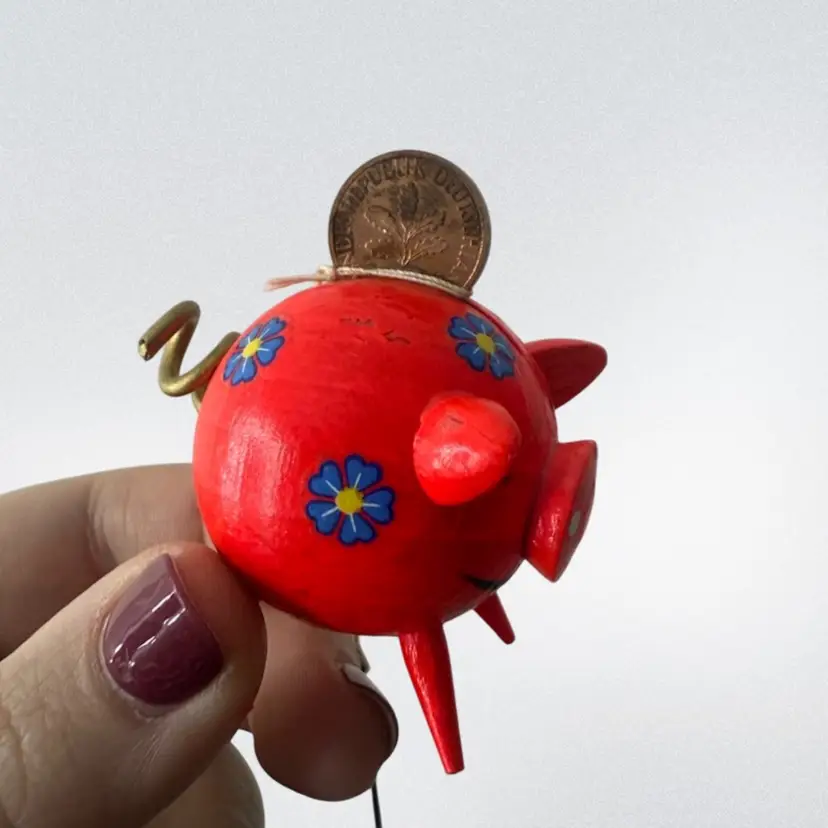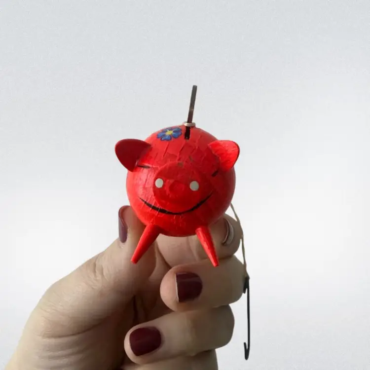 Good vintage condition- about 2in tall. Made of wood, has some nice weight to it. The paint is a bit more fragile, so be gentle when handling. No box or steinbach sticker.