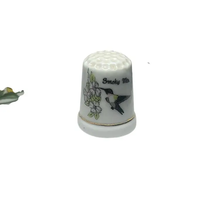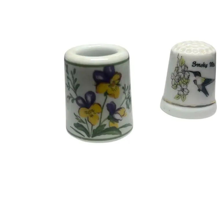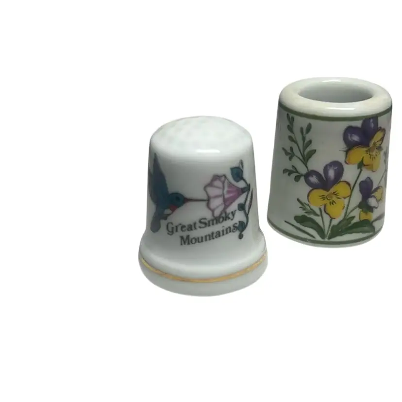 3 Vintage Thimbles 2 With Humming Birds & Flower From Smokey Mtns. One Floral Like Pin Holder - Made In Germany.