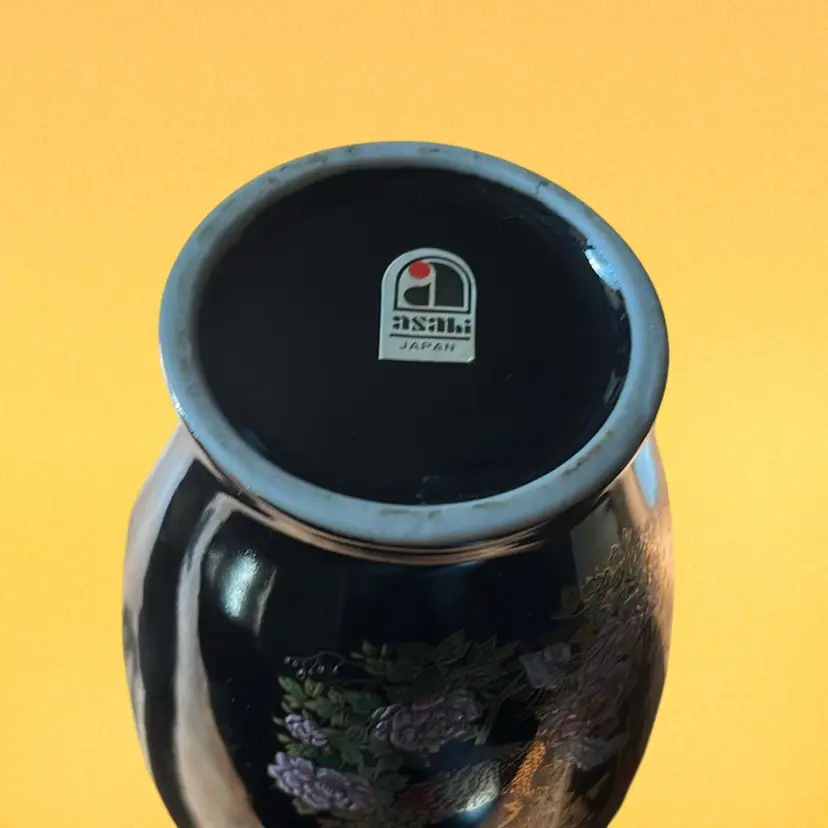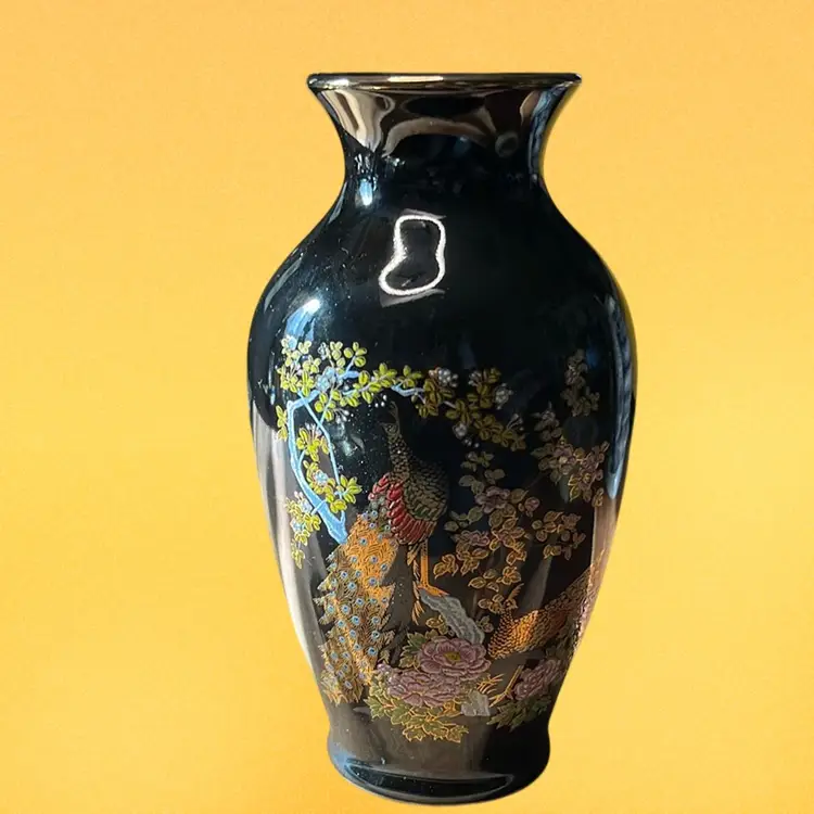 32. Hand Painted Peacock Vase 6.25” Tall Japanese Style