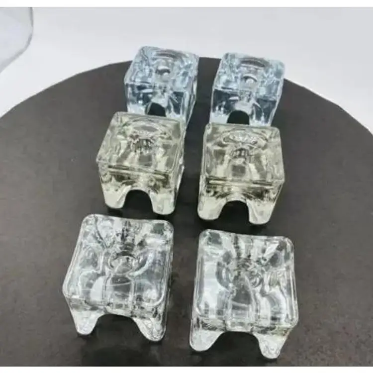 Elevate your table setting with this pair of exquisite Juhava Ri-Jalka candle holders, handcrafted in Finland from high-quality clear glass. These mid-century modern holders are perfect for adding a touch of Scandinavian elegance to any decor. They are versatile enough to hold both napkins or candles, making them a practical and stylish addition to your dining experience. The hand crafted production technique gives each piece a unique and artistic touch, while the brand's reputation for quality ensures that these candle holders will be a cherished addition to your collection. Choose from three sets to find the perfect match for your aesthetic or collect all 3 to make a wonderful table setting for your guests.