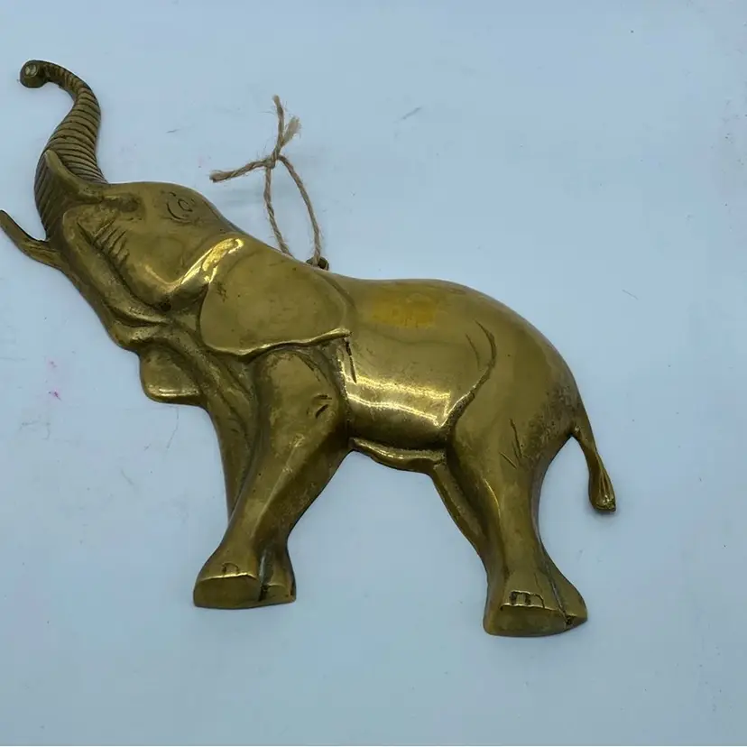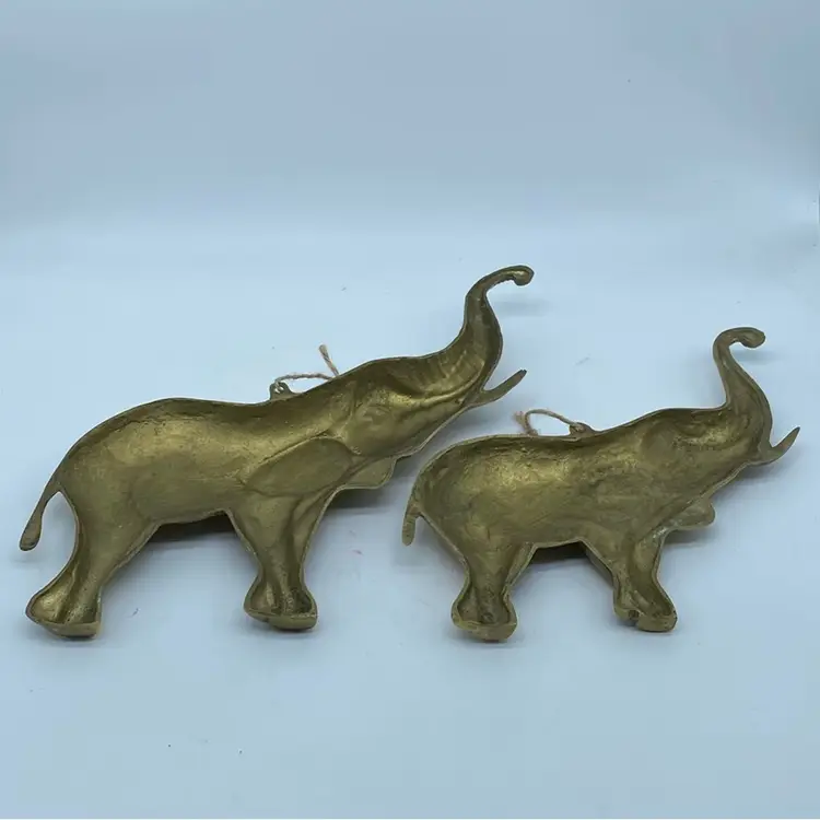Larger 9 x 10” Smaller 8 x 8” No damage noted Brass figurines, particularly those depicting animals like elephants, have been popular decorative items for many decades. Their appeal lies in the warm, golden hue of the brass and the level of detail that can be achieved through casting or molding. Elephants, in particular, are often associated with good luck, wisdom, and strength in various cultures, making them a desirable subject for home decor.