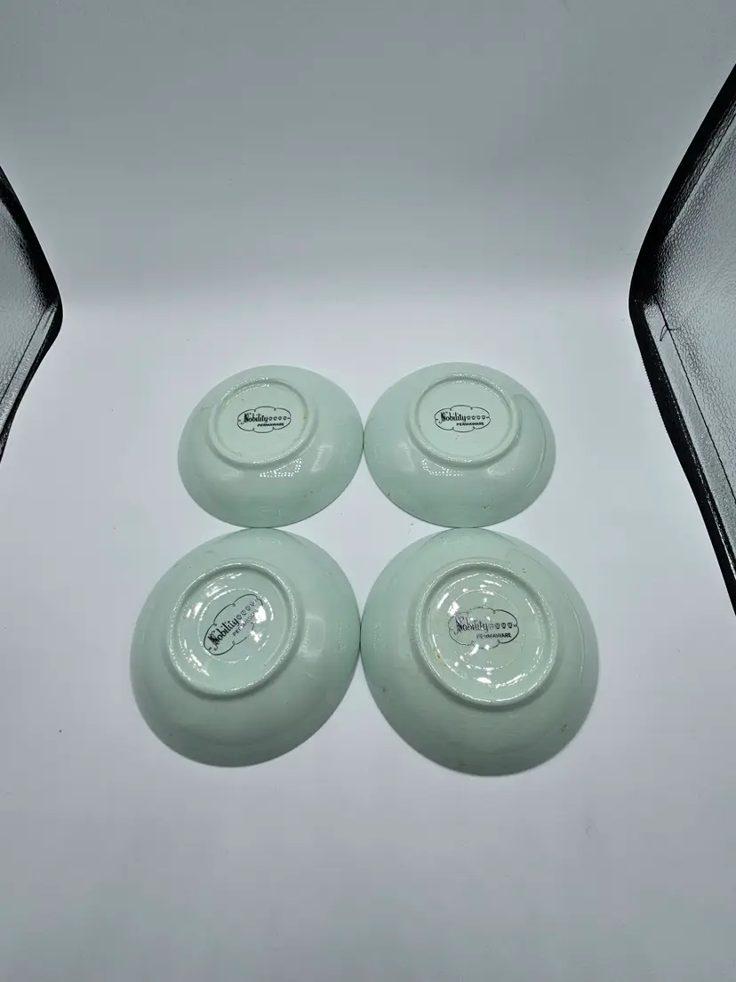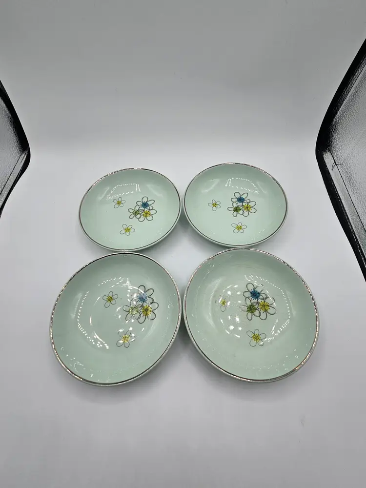 4 Nobility Permaware Vintage Mint Green Floral Fruit Berry Bowls, 5.25", Crazing