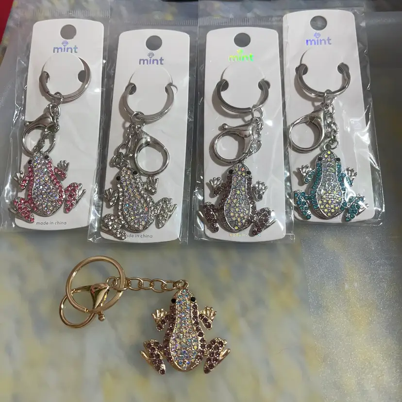 5pc Rhinestone Frog Keychain Purse Charm