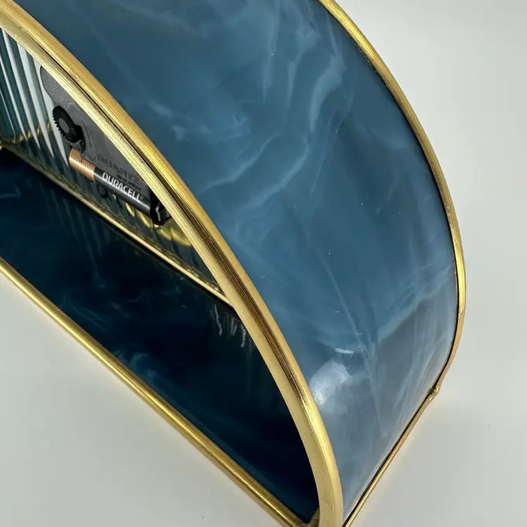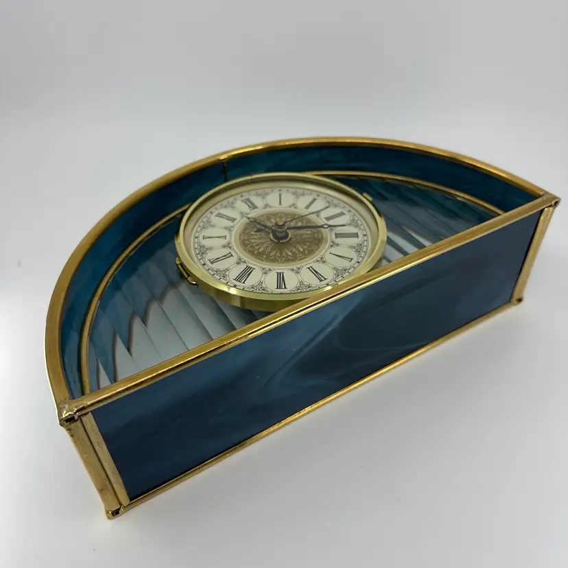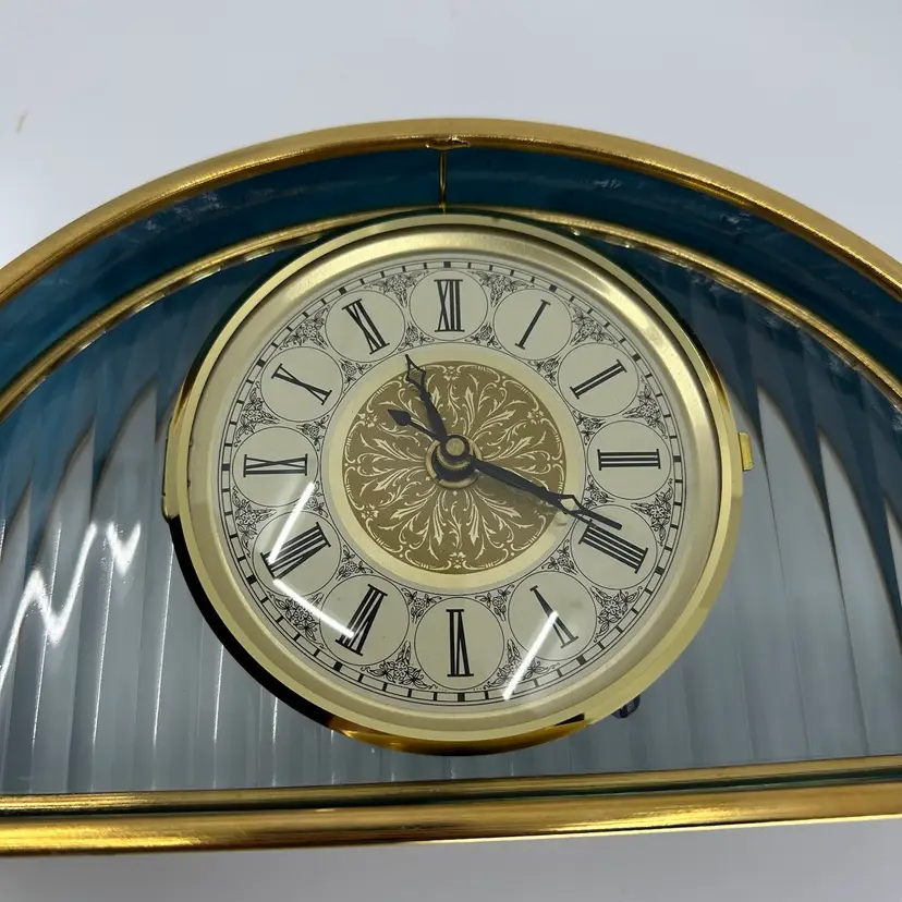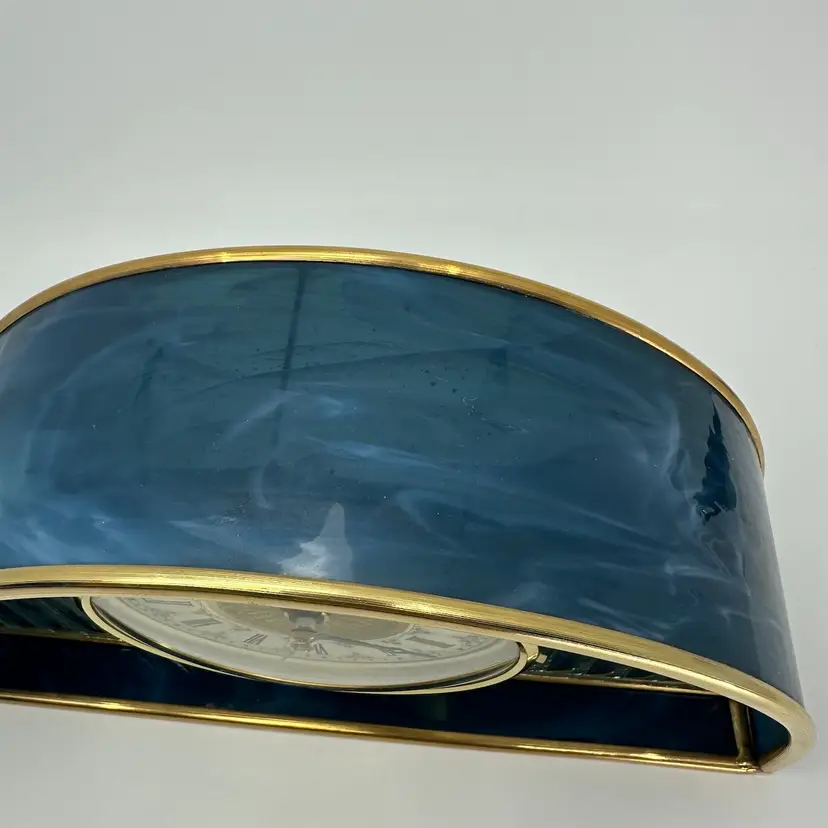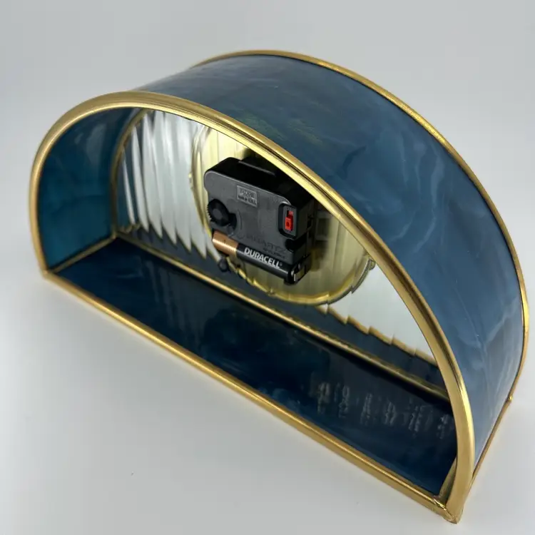 A GORGEOUS Vintage Blue Stained Glass Table Mantle Clock Germany