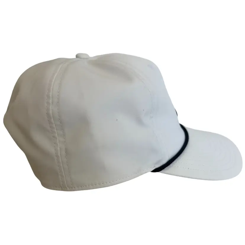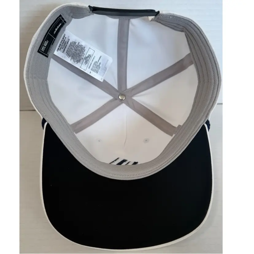 The Adidas Golf Tour Five Panel White Golf Hat with Blue Rope Snapback is a stylish and functional accessory for golf enthusiasts. Made of moisture-wicking polyester material, this hat is designed to keep you comfortable and dry on the golf course. The solid white color and embroidered logo accents add a classic touch to this sporty hat, making it suitable for both activewear and casual occasions. With its one-size fit and unisex design, this hat is a versatile addition to any golfer's wardrobe.