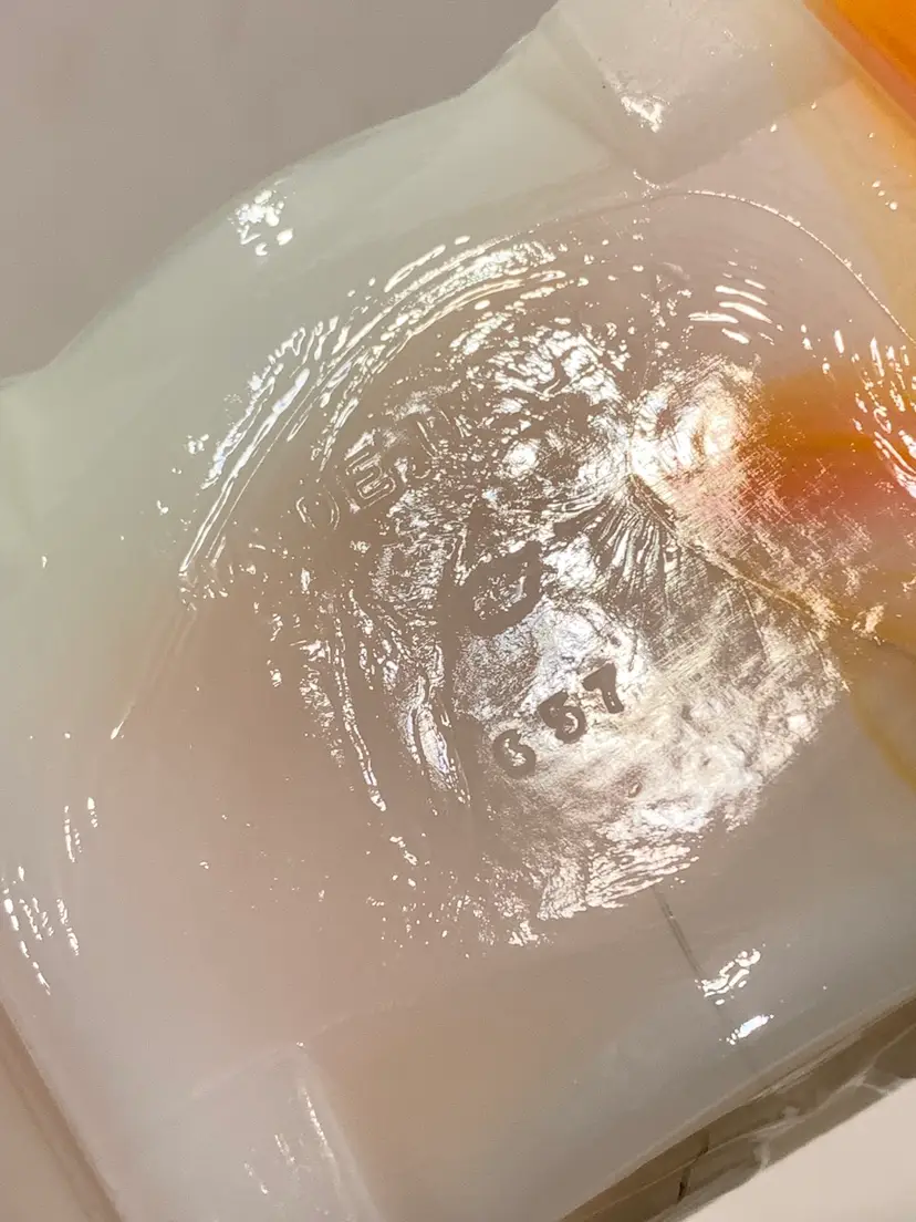 5.25” by 3” by 2.25” tall. Good condition, there are some minor flea bites.