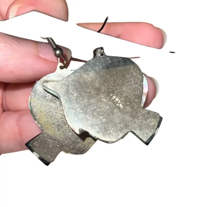 Alpaca Silver Abalone & Mother Of Pearl & Onyx Fish Earrings 2”