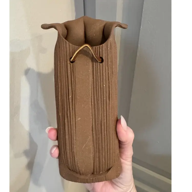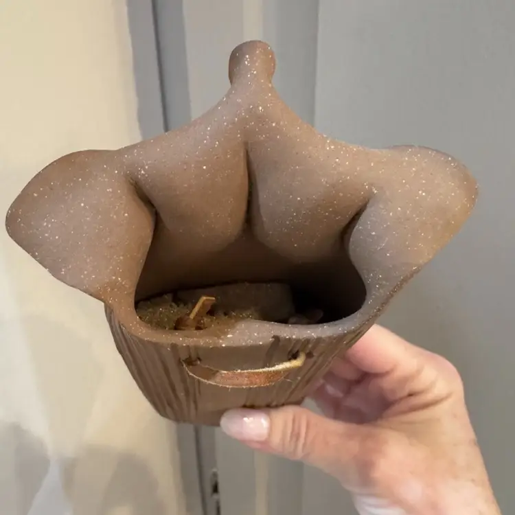 Beautiful handmade pottery wall pocket vase. No chips or cracks. Measures about 8 inches long. Would look really great with some dried wildflowers coming out of it.