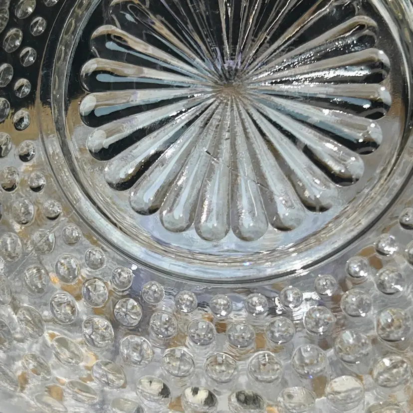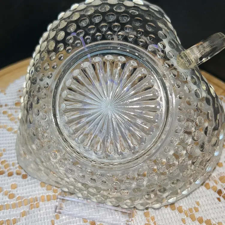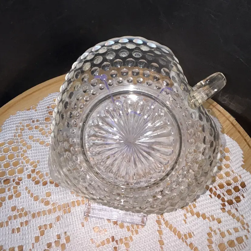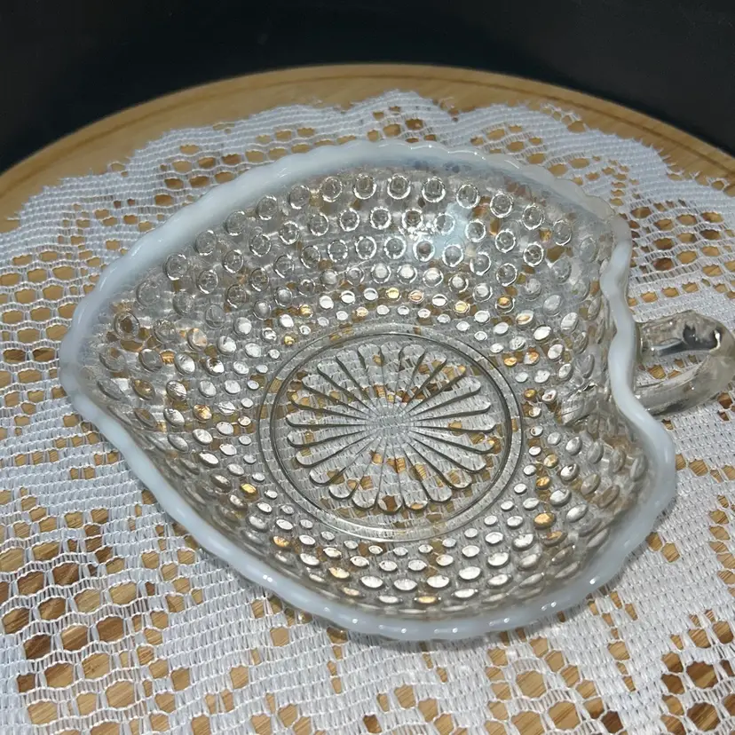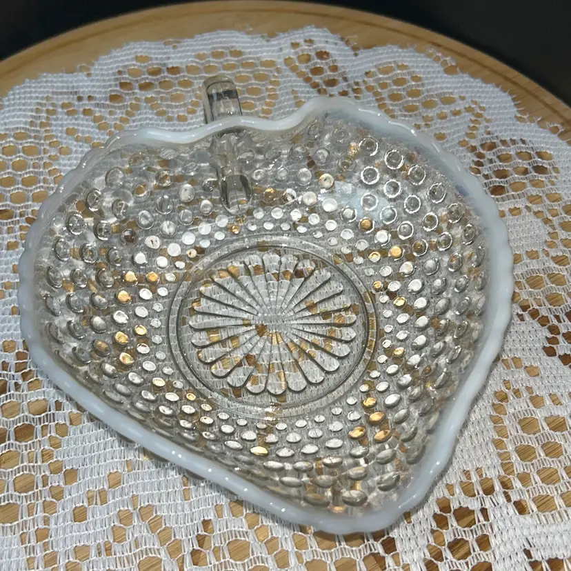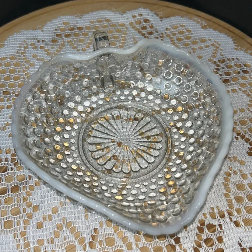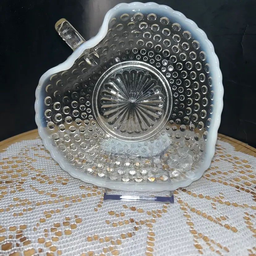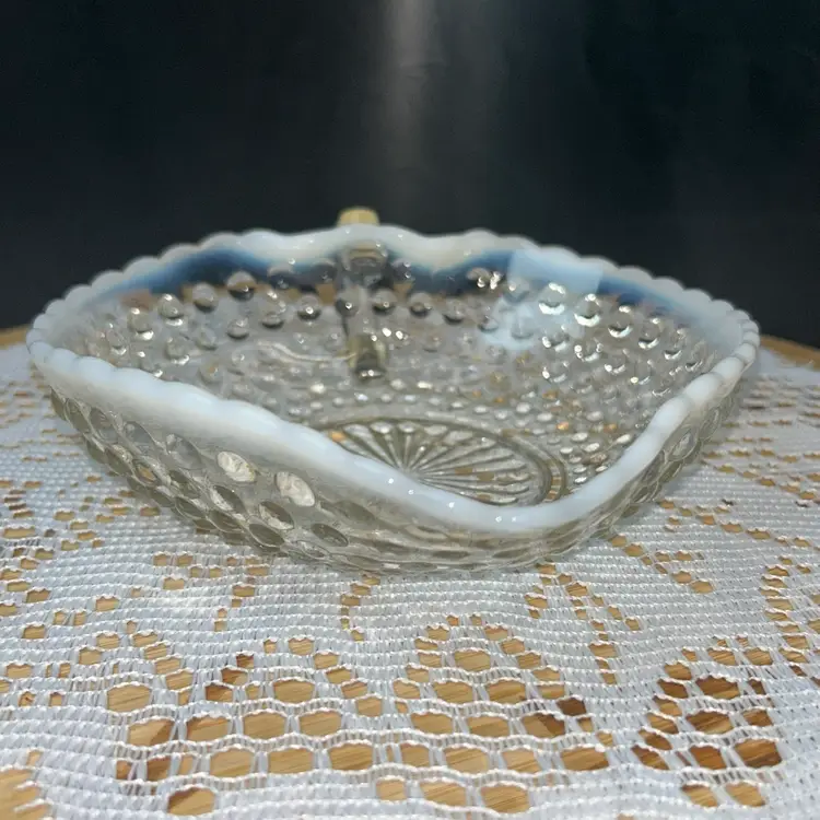 Anchor Hocking Moonstone Blue-White Opalescent Hobnail Heart Shape Bonbon Dish With Handle