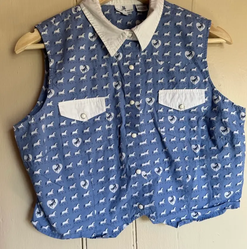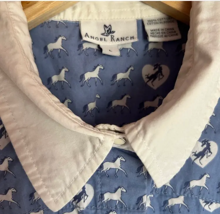 ANGEL RANCH 100% COTTON HORSE PRINT BUTTON UP TOP SIZE L