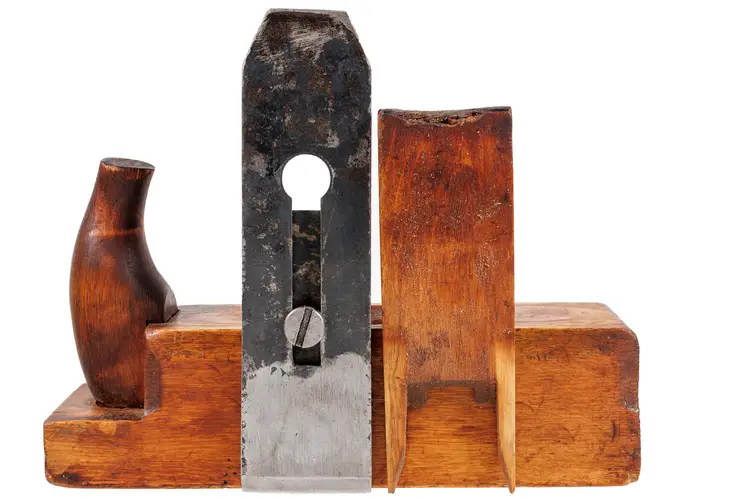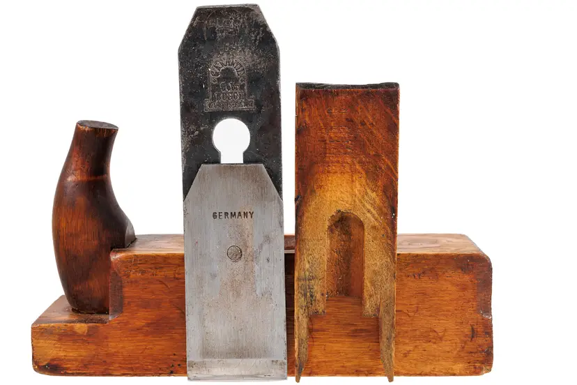 A solid user scrub plane marked "F.W.B" on the iron and "Germany" on the cap iron. The thick tapered iron is nice and sharp. The horn is a little loose.