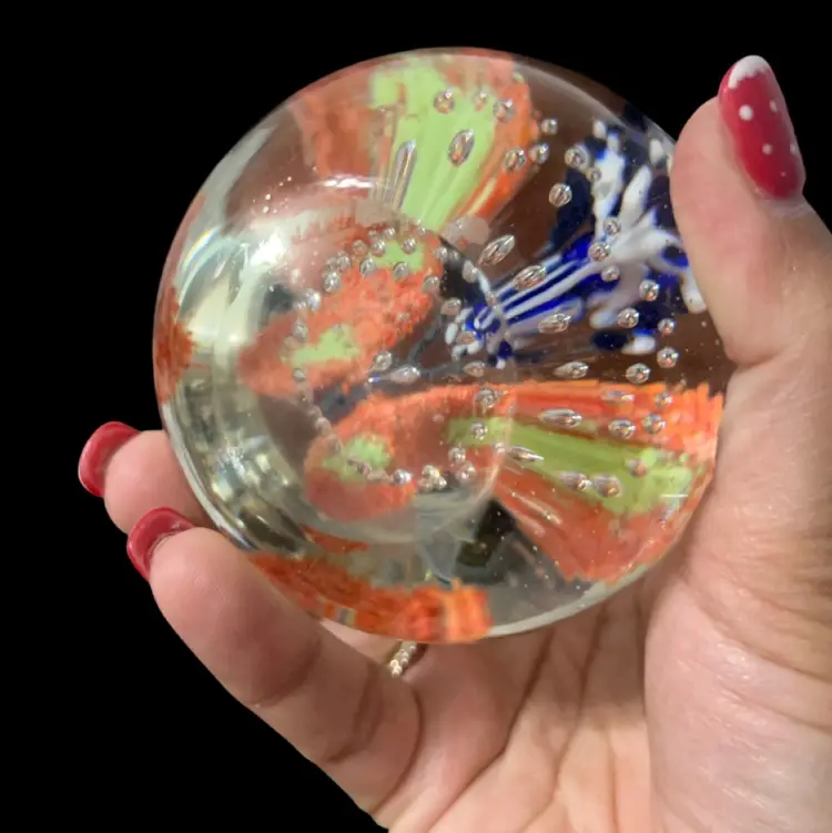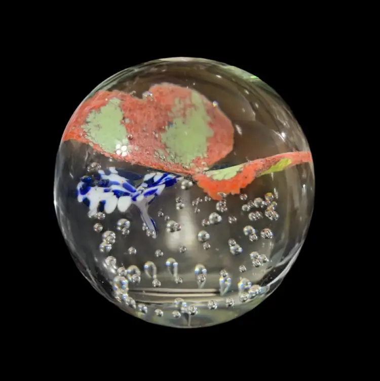 Antique Glass Paperweight Butterfly and Confetti Blue/White Floral