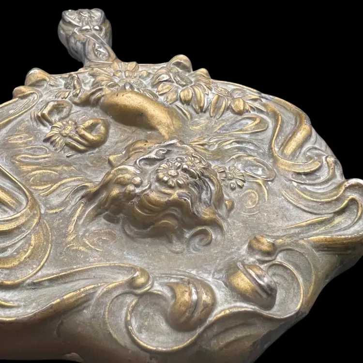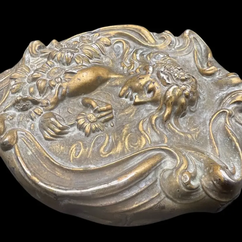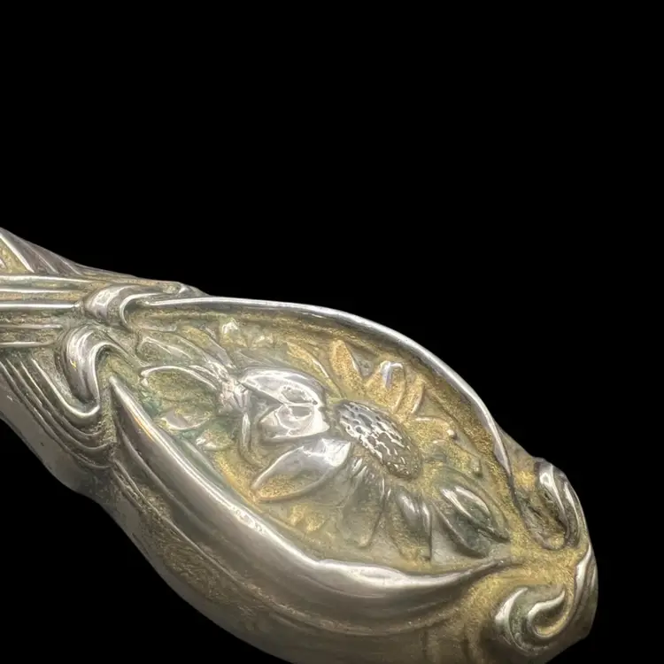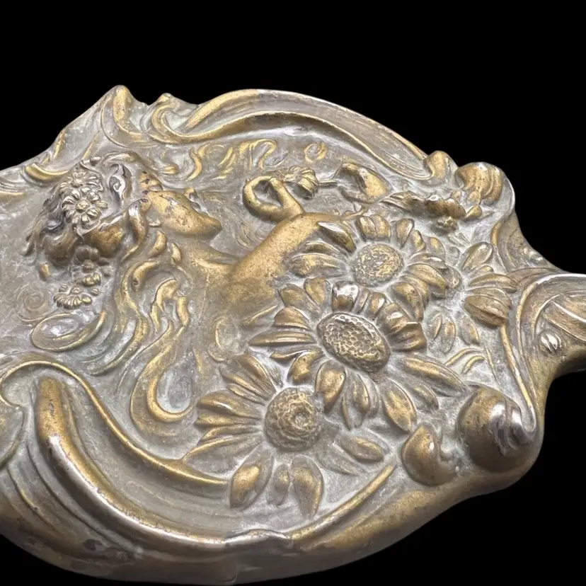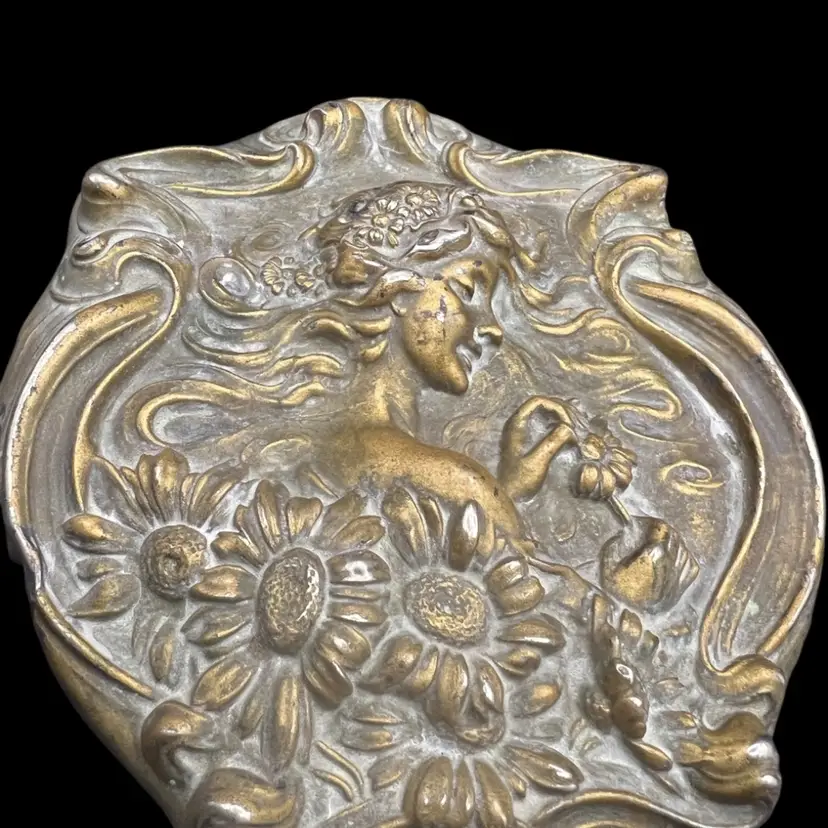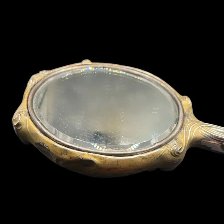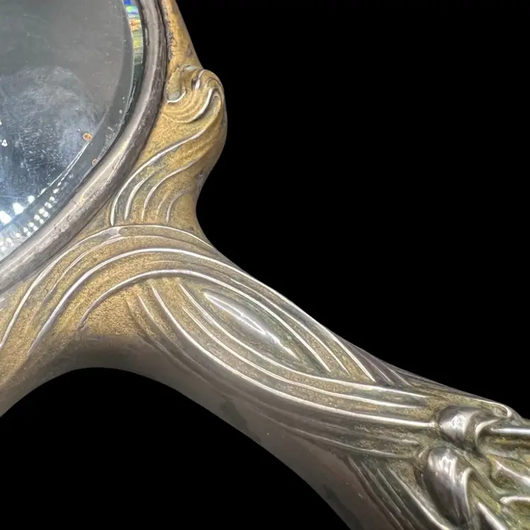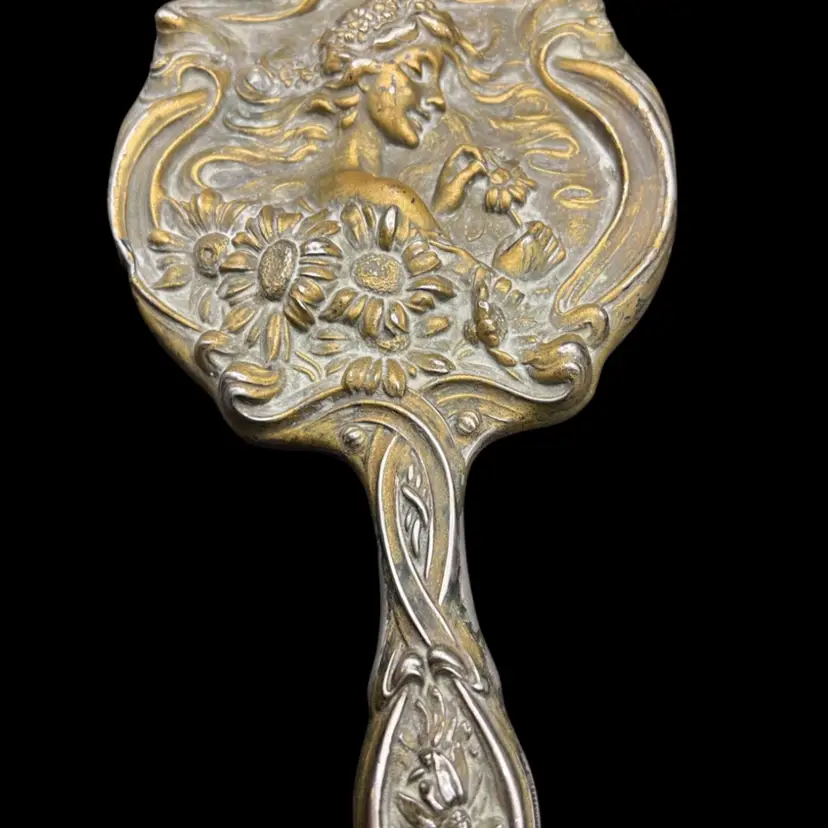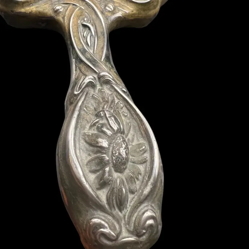 Antique Ornate sterling silver Unger Brothers “He Loves Me”, Art Nouveau hand mirror with repoussé floral and female figure. Untested, Only Researched. 8” Long, Mirror Is In Good Condition. See Pictures. Someone Painted Over The Silver , With Some Silver Cleaner It Is Coming Off But Is Still Beautiful In Current Condition. Unique…. Rare Silver Find!! Hello Collectors- Resell For $500 -$1k… And Up, In Refurbished Condition