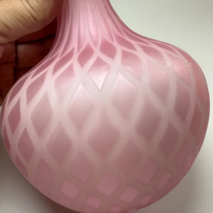 Antique Victorian Mother-of-Pearl Satin Glass Vase Quilted Diamond Pattern Cased