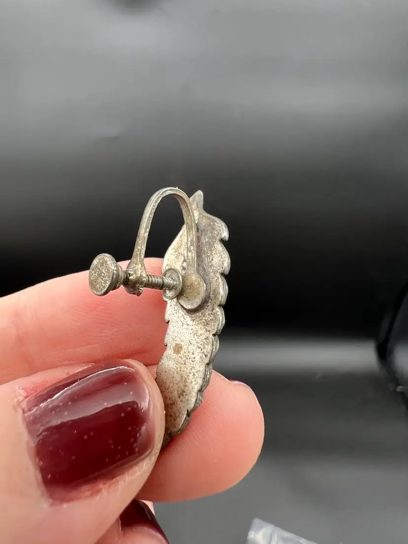 Art Deco Leaf Sterling Sliver Screw Back Earrings With Marcasite