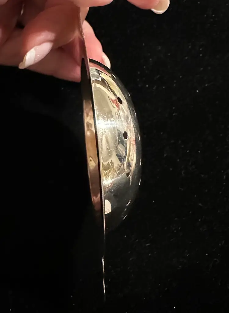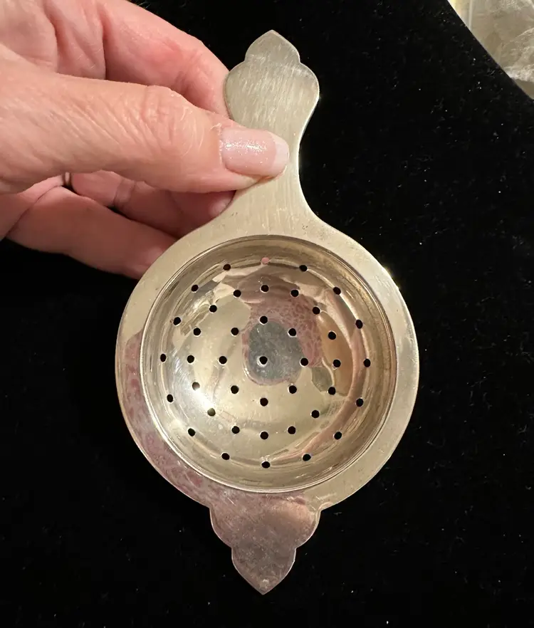 Lovely art deco Sterling Silver tea strainer it is 5.5” x 2”. It is in very good condition.
