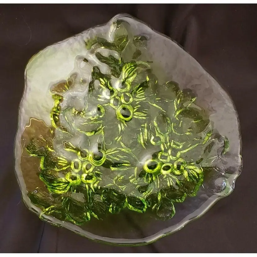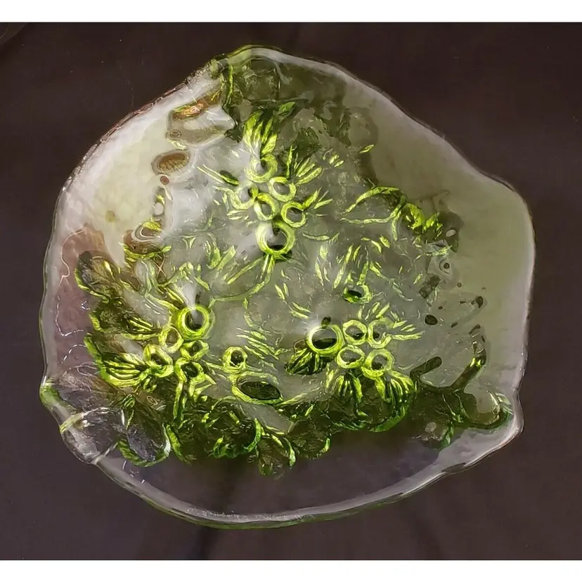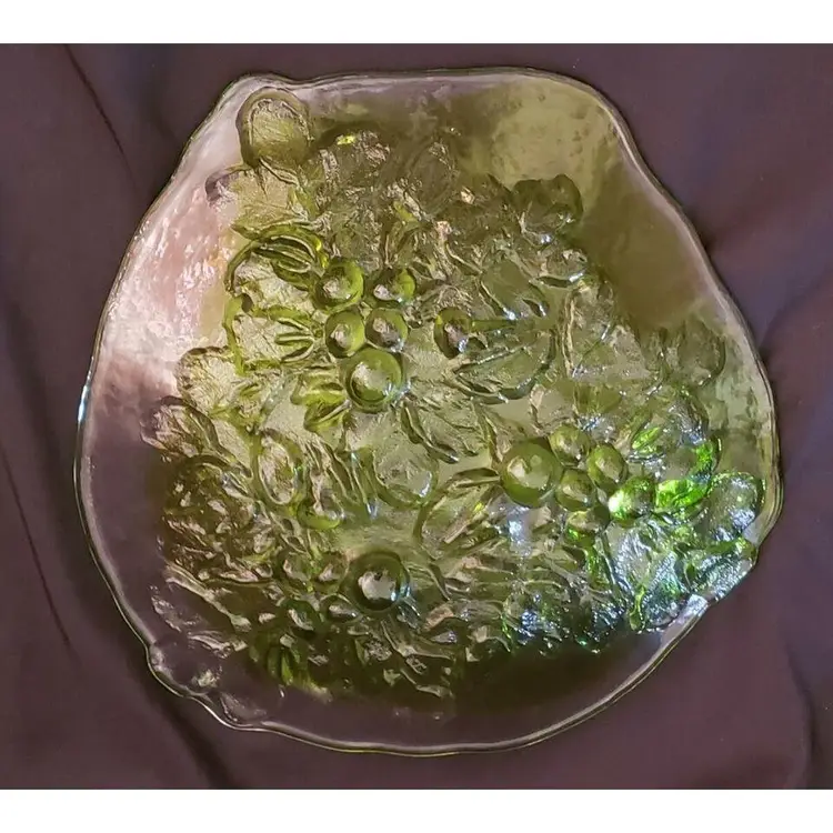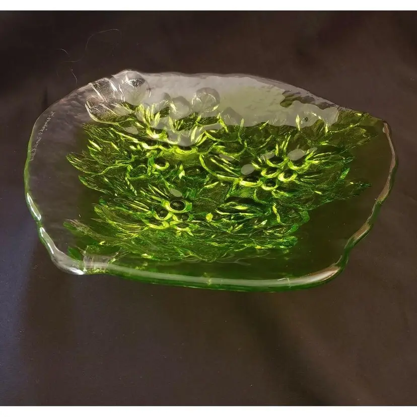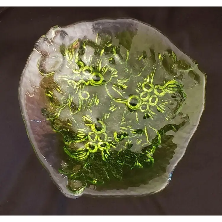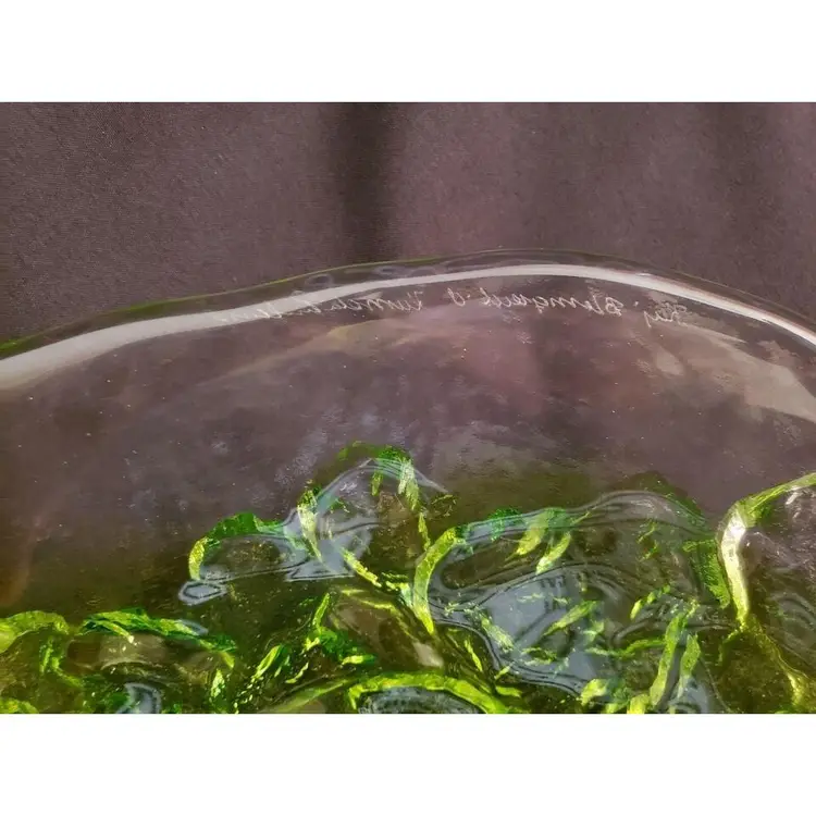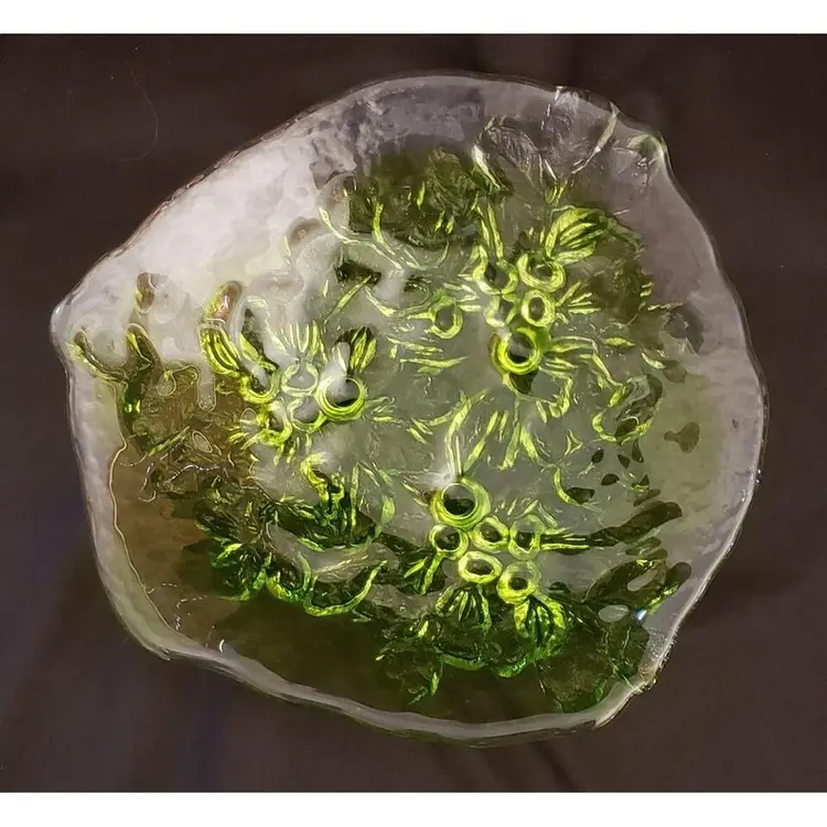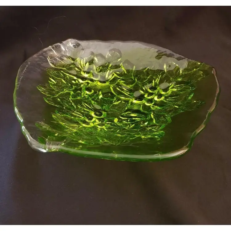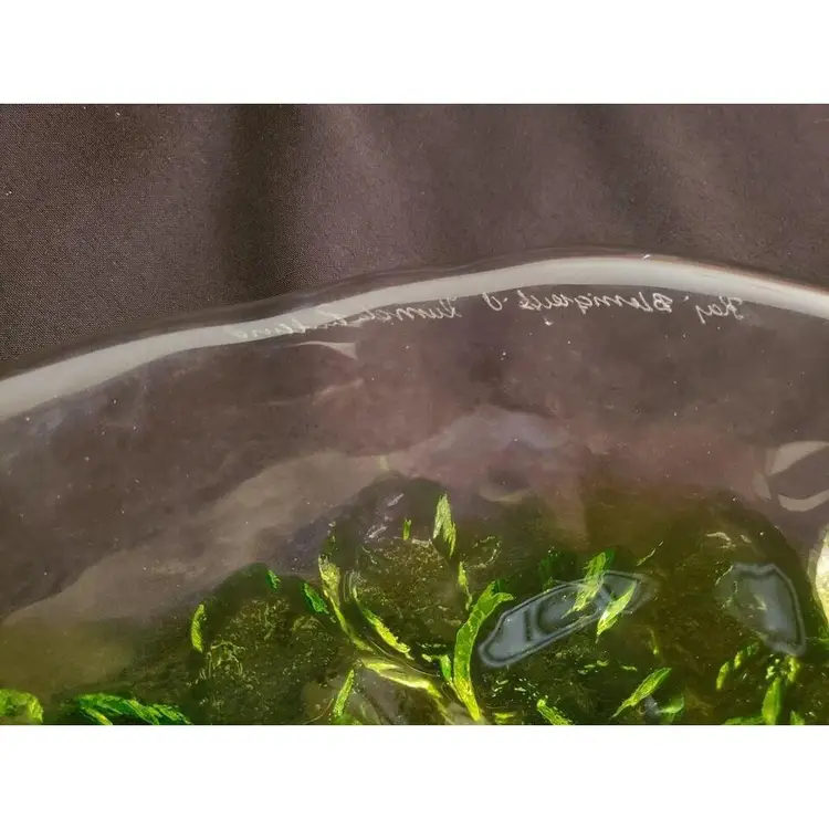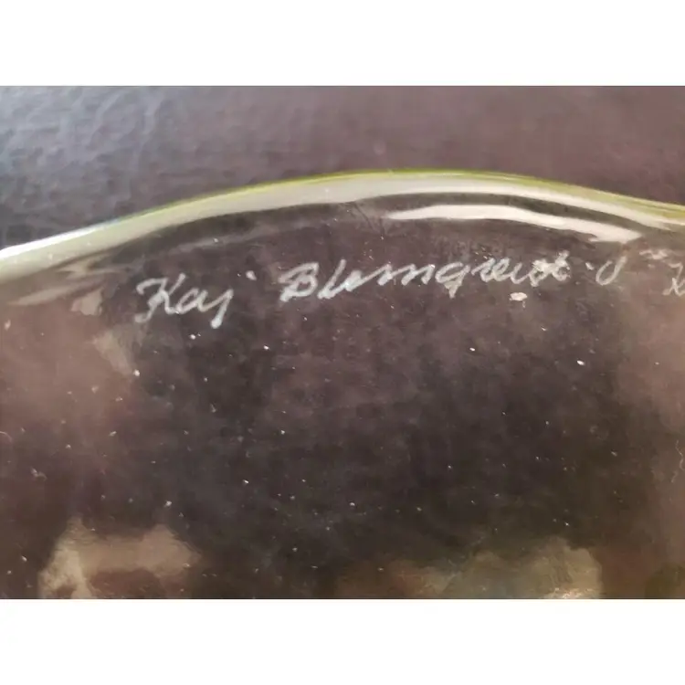 Kaj Blomqvist for Kumela, Finland large Glass Platter Signed by Kaj Blomqvist. Clear & Green transparent glass Vintage. Approximately 15 1/2" at widest point. Condition is "Used" with no obvious issues that I can see. A very nice piece probably made in the 70's or 80's, the biggest piece that I can find in my research, also very heavy piece so shipping will be expensive. Shipped with USPS Priority Mail. #0377ms NOTE: I will try and find a cheaper way of shipping with Pirate Ship when purchased.