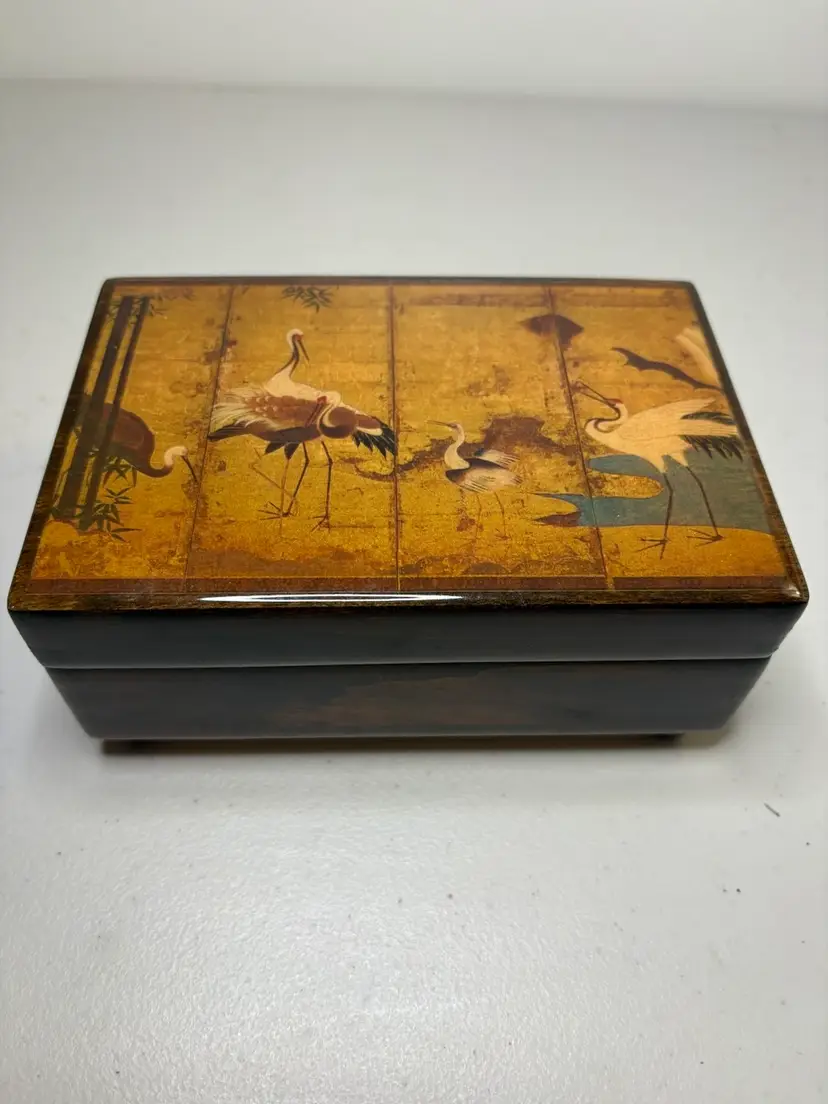 The Asian Inspired Music Box by American Music Box Company is a unique and charming decorative collectible that plays the timeless tune "TIL The End Of Time." Manufactured in the 1970s to the present day, this music box brings a touch of nostalgia and whimsy to any space. Perfect for collectors of music boxes or those looking to add a special touch to their decor, this piece is sure to delight with its intricate design and soothing melody.