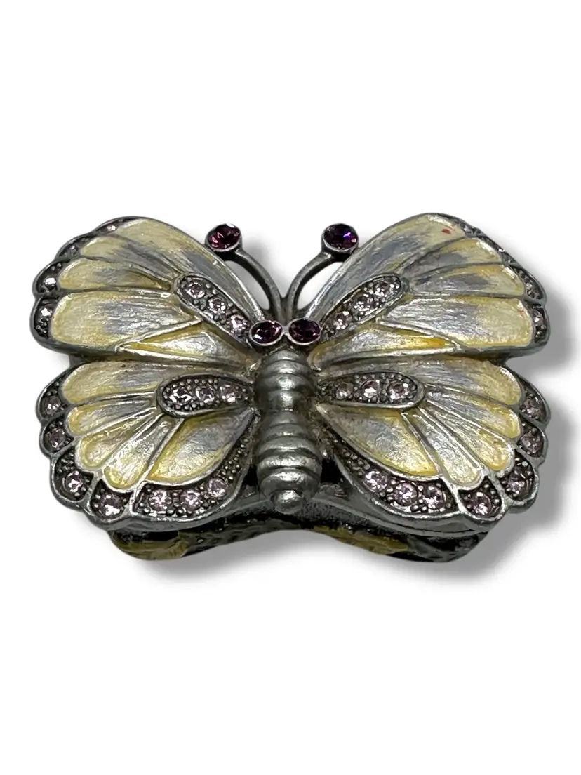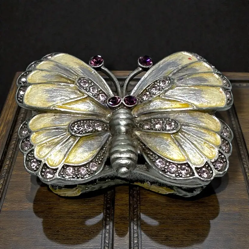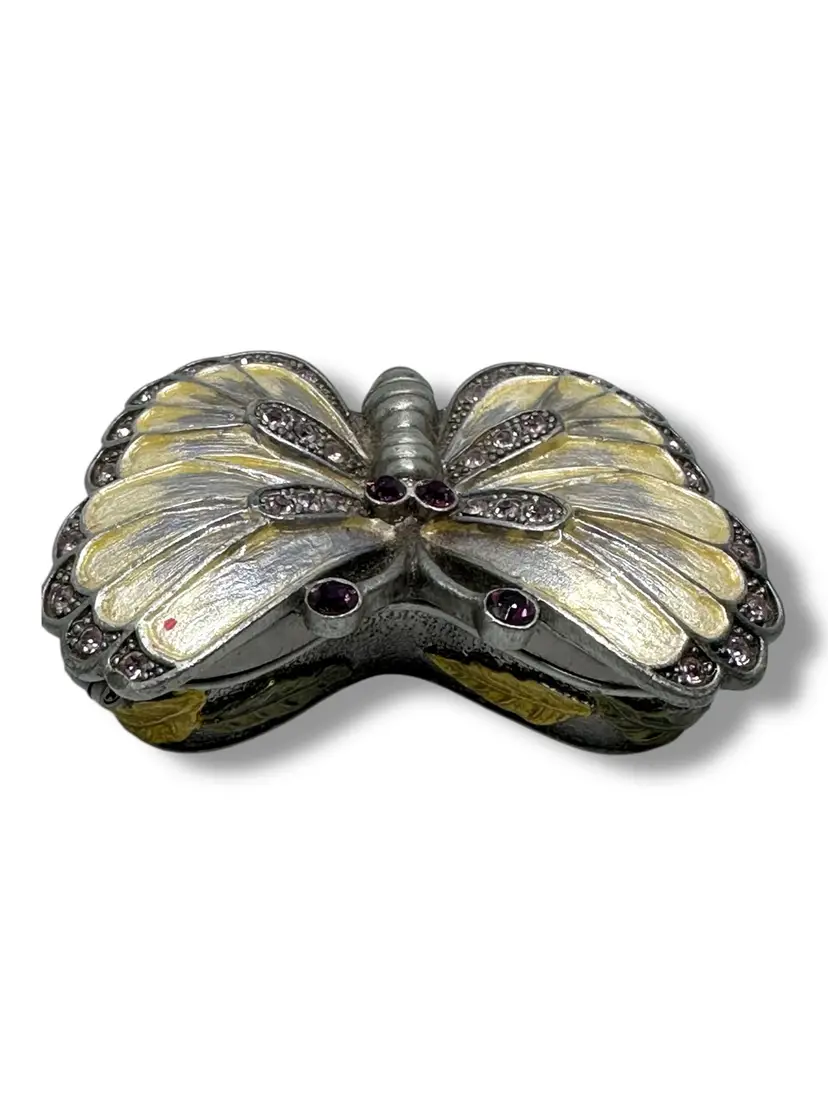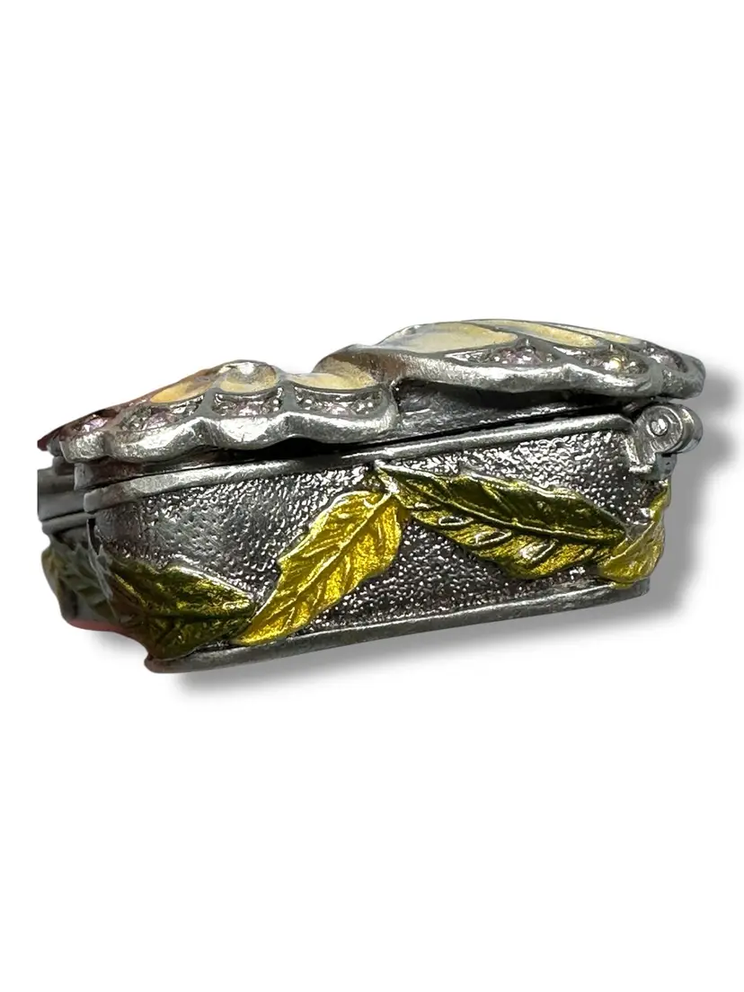 010. Beautiful Enamel Rhinestone Metal Trinket Box. Magnetic Closure. Beautifully Detailed.