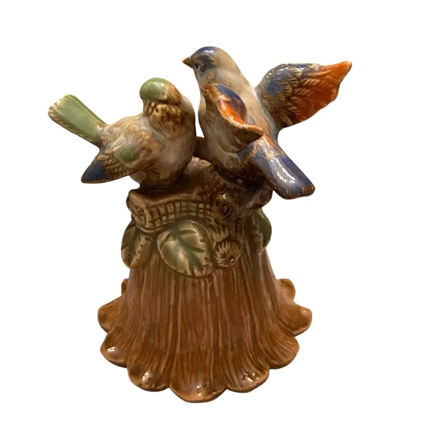 5” x 3 1/2” beautiful love birds on a blue rose on brown bell. In perfect condition!